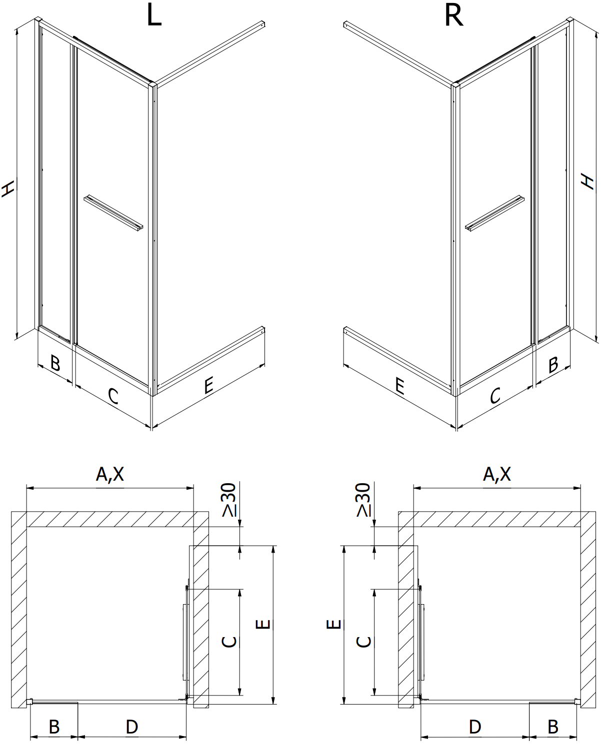 Cabinele, ușile și pereții de duș sunt adaptate standard pentru montarea pe cădițe de duș de anumite dimensiuni. Aceste dimensiuni sunt menționate în numele sau descrierea produsului. Totuși, trebuie reținut că dimensiunile reale ale elementelor pot diferi ușor de valorile nominale. În cazul unui montaj planificat direct pe pardoseală, se recomandă verificarea atentă a dimensiunilor exterioare și a dispunerii elementelor, conform desenului tehnic.