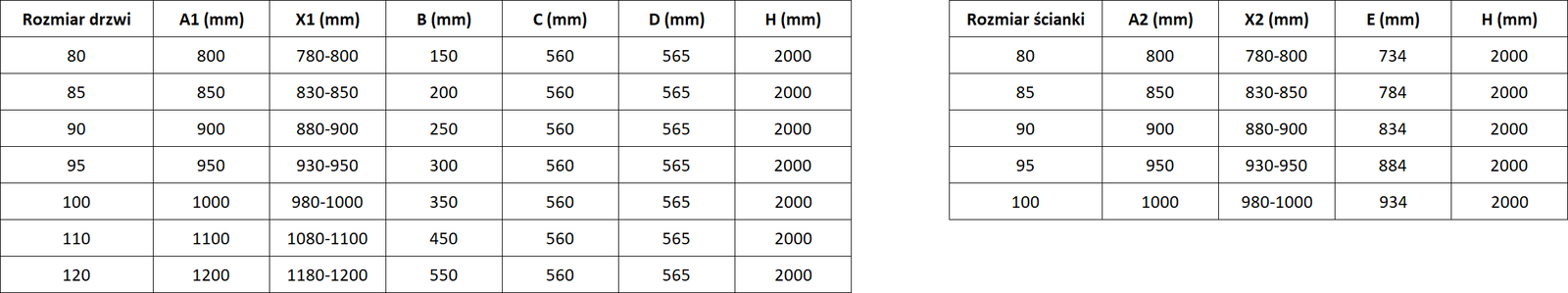 Dimensiune: 85x90 cm (uși 85 cm, perete 90 cm)