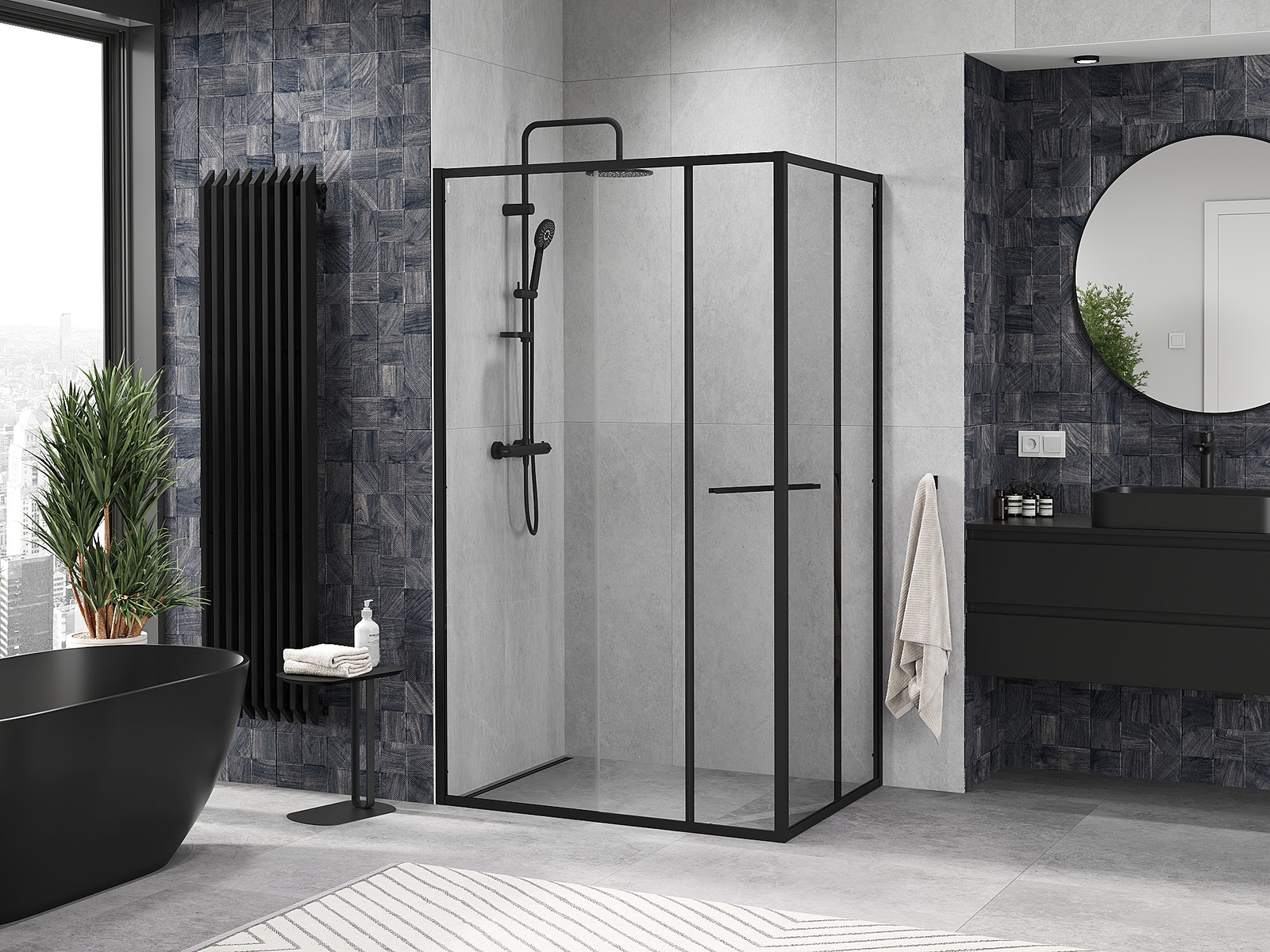 Mexen Linea cabina de duș glisantă 85 x 100 cm, transparentă, neagră - 8E1-085-100-70-70