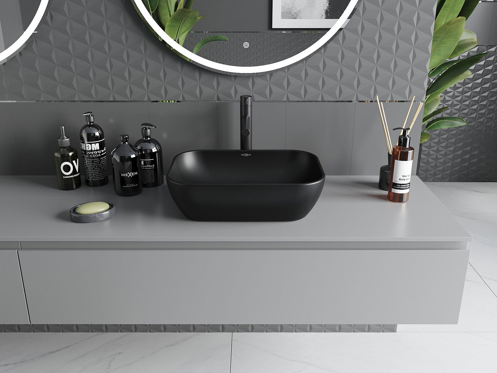 Suprafața mată a ceramicii subliniază perfect natura culorii produsului, oferindu -i un finisaj unic și expresiv. Structura subtilă a ceramicii mate introduce eleganță în baie, creând un spațiu estetic.