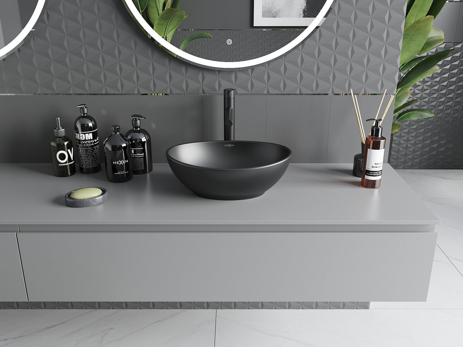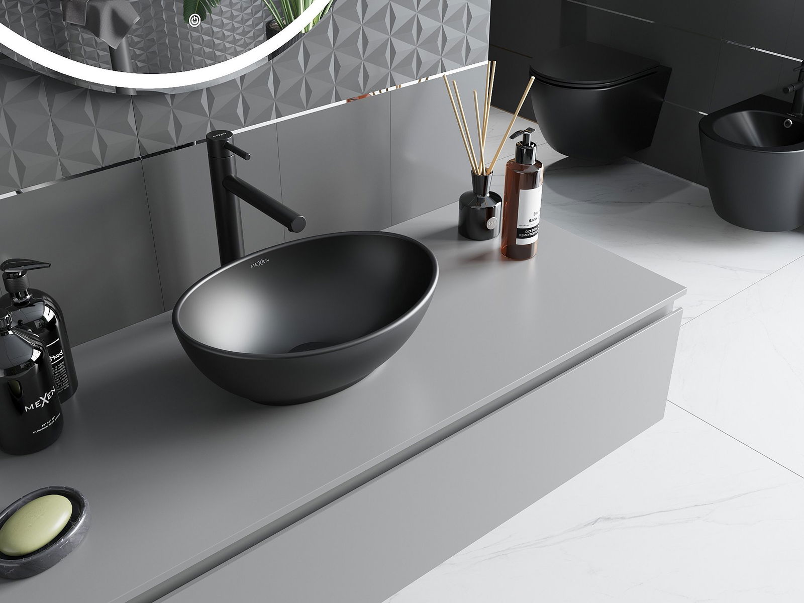 Suprafața mată a ceramicii subliniază perfect natura culorii produsului, oferindu -i un finisaj unic și expresiv. Structura subtilă a ceramicii mate introduce eleganță în baie, creând un spațiu estetic.