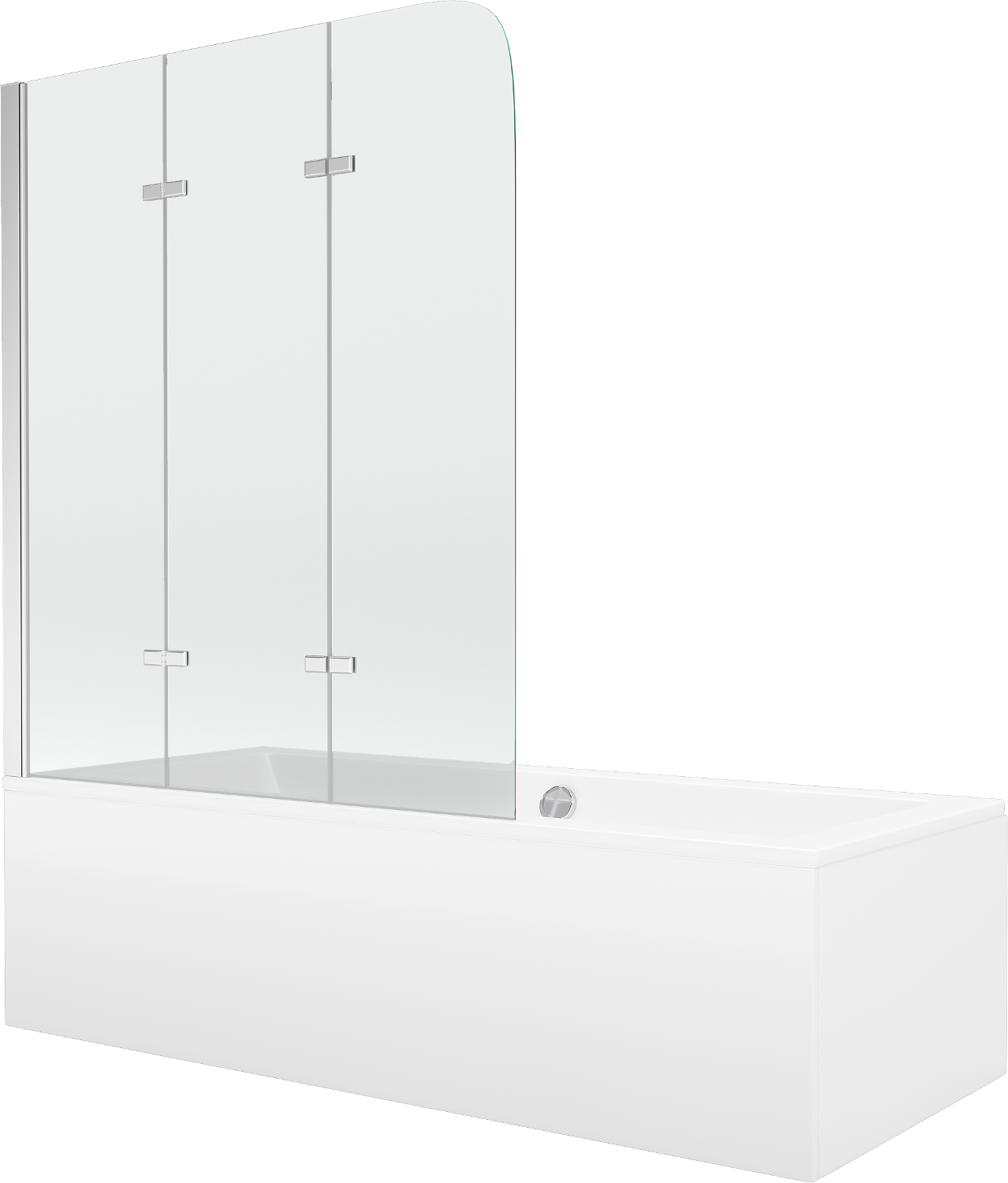 Cadă dreptunghiulară Mexen Cube 170 x 80 cm cu carcasă și paravan cu 3 aripi 120 cm, transparent, crom - 550517080X9012030100