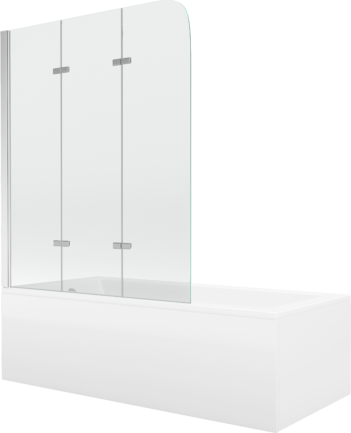 Cada dreptunghiulară Mexen Cubik 150 x 70 cm cu carcasă și paravan cu 3 panouri 120 cm, transparent, crom - 550315070X901203010?