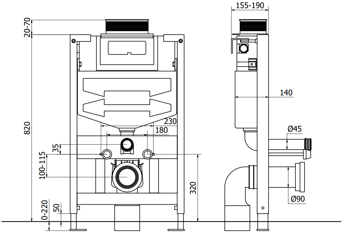 Posibilitatea de a regla înălțimea cadrului permite o adaptare mai bună la diferite condiții tehnice din baie. Intervalul de reglare flexibil asigură confortul montajului și obținerea înălțimii optime a cadrului.