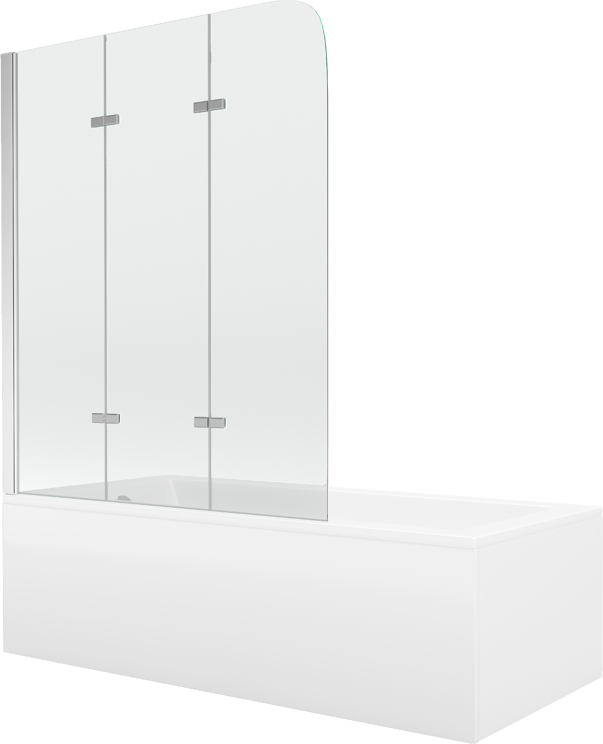 Mexen Cubik cadă dreptunghiulară 160 x 70 cm cu carcasă și paravan cu 3 aripi 120 cm, transparent, crom