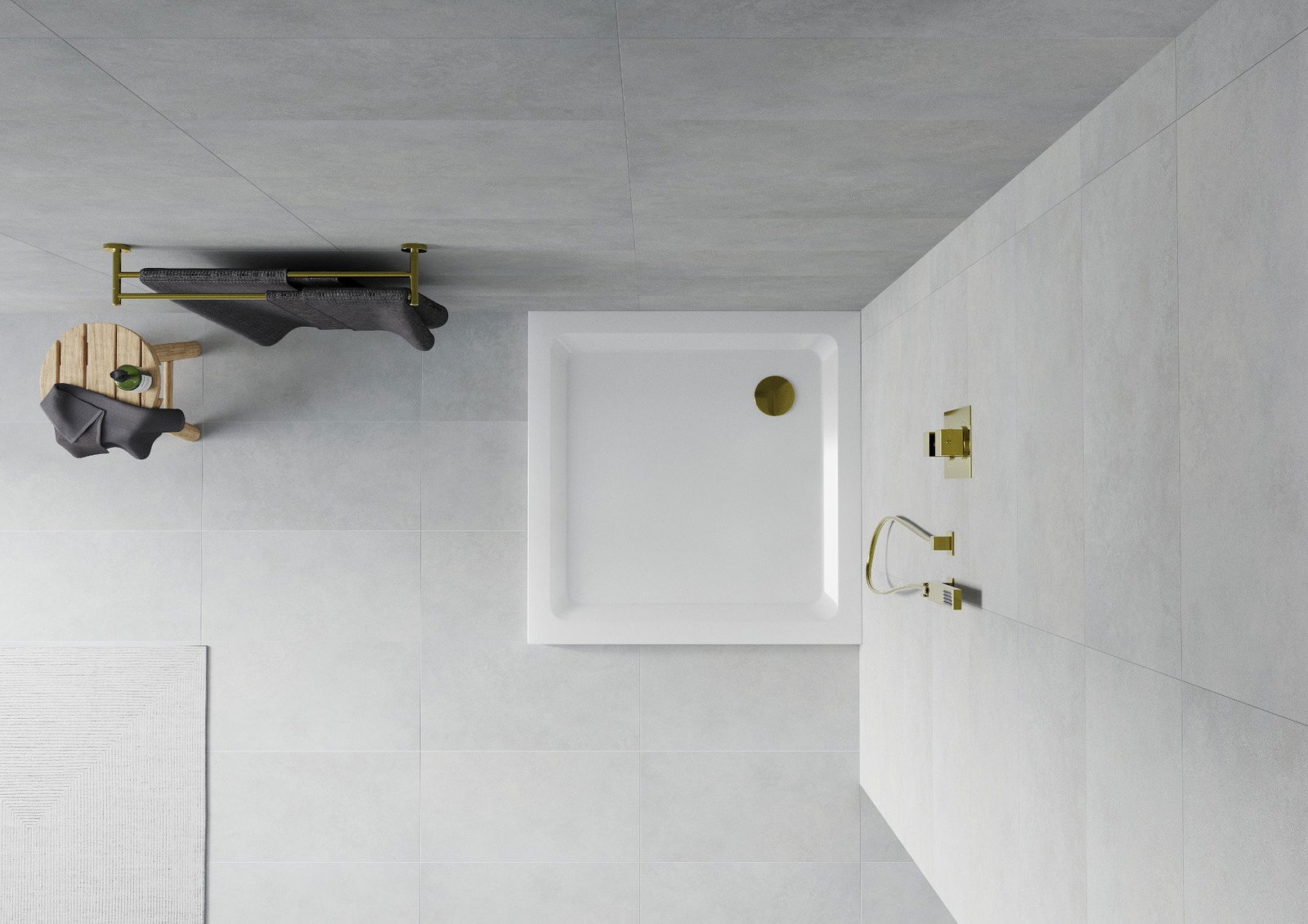 Mexen Flat cadă de duș pătrată slim 100 x 100 cm, alb, sifon auriu - 40101010G