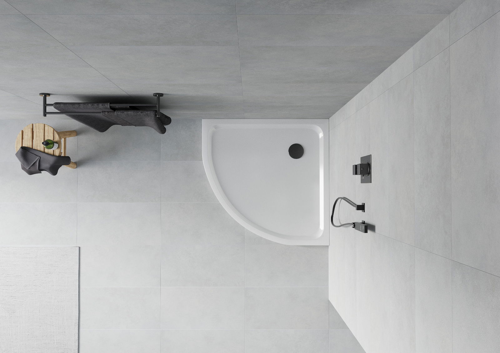 Mexen Flat cadă de duș semicirculară slim 70 x 70 cm, albă, sifon negru - 41107070B