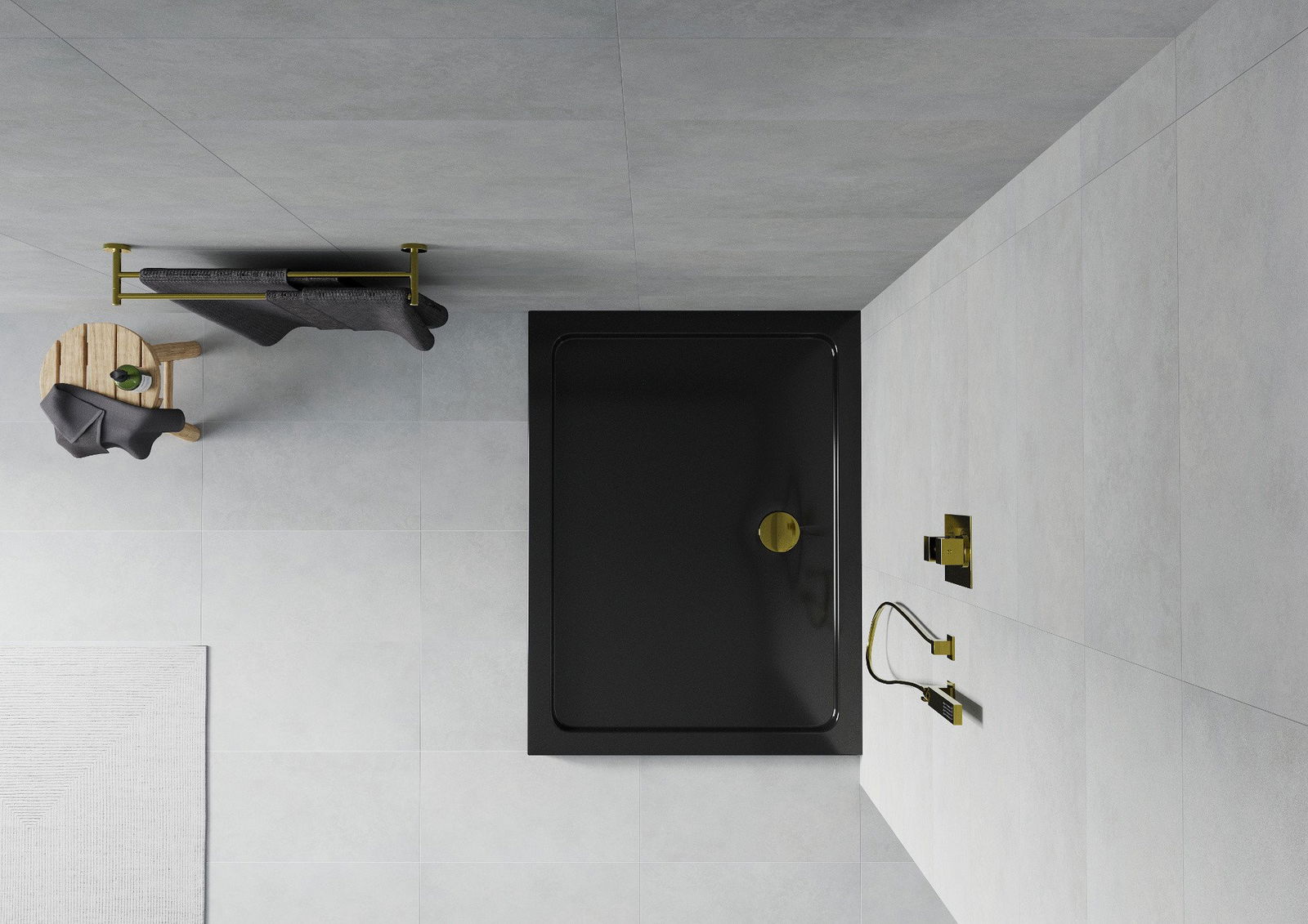 Mexen Flat cadă de duș dreptunghiulară slim 100 x 80 cm, negru, sifon auriu - 40708010G