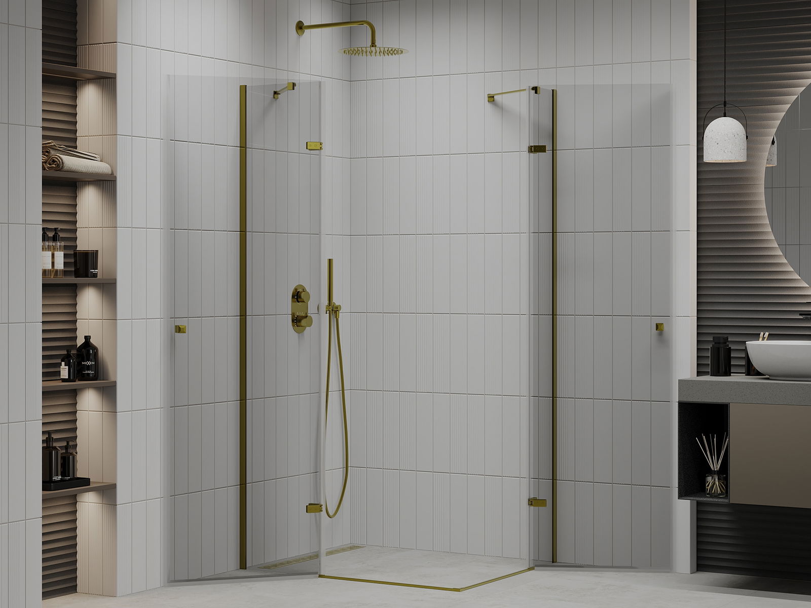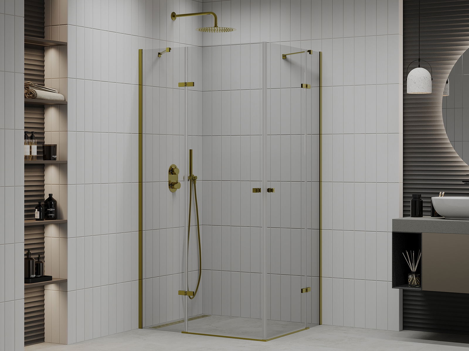Mexen Roma Cabină de duș pivotantă Duo 90 x 80 cm, transparentă, aurie - 854-090-080-50-00-02