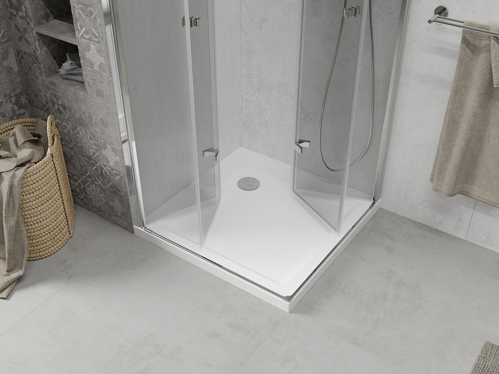 Posibilitatea de a plia ușile, atât către exterior, cât și către interior, permite obținerea mai mult spațiu atunci când nu se folosește dușul. Este o soluție ideală pentru băi mai mici, maximizând utilizarea spațiului disponibil.