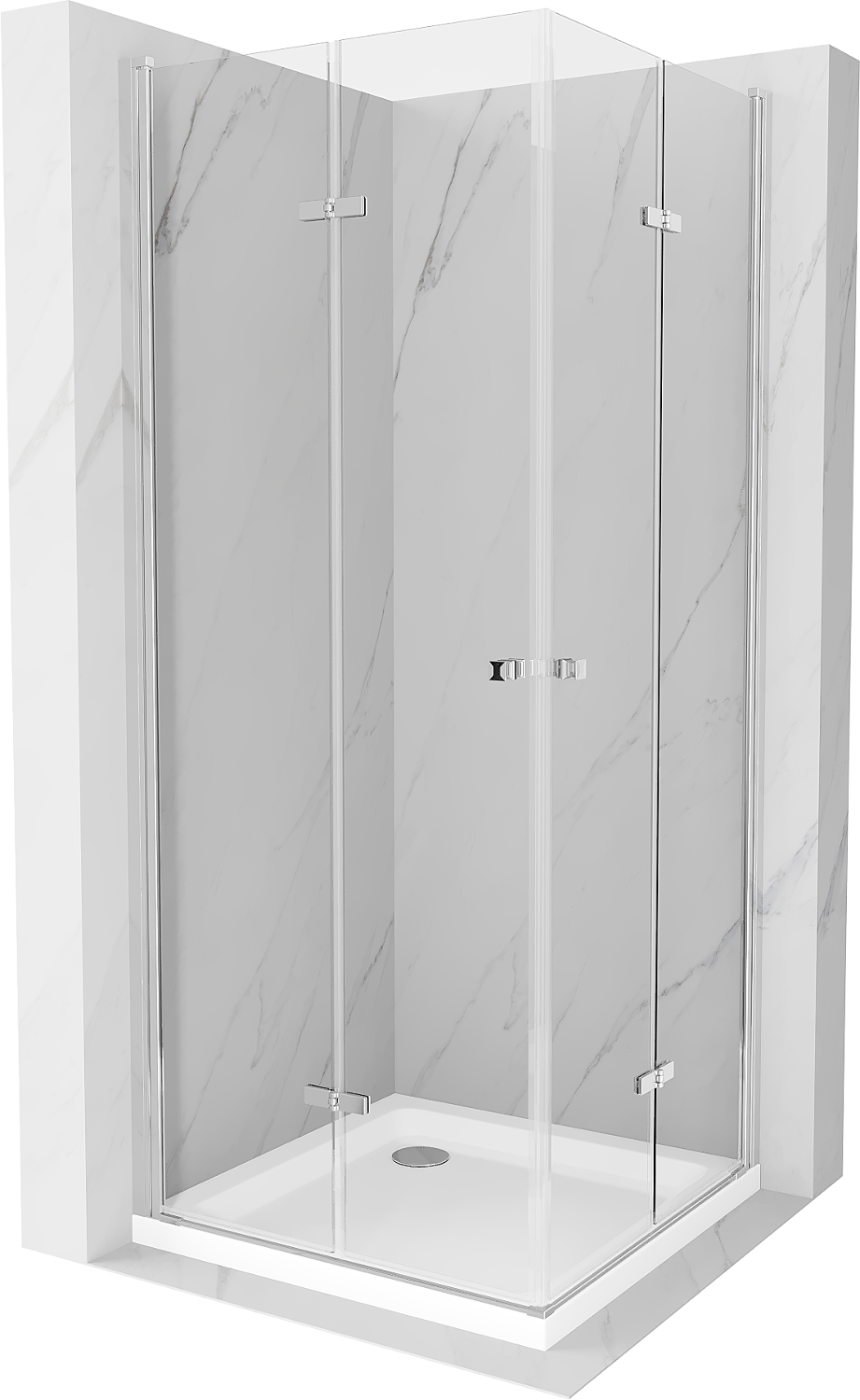Mexen Lima Duo cabină de duș pliabilă 90 x 90 cm, transparentă, crom + cadă Flat - 856-090-090-01-02-4010