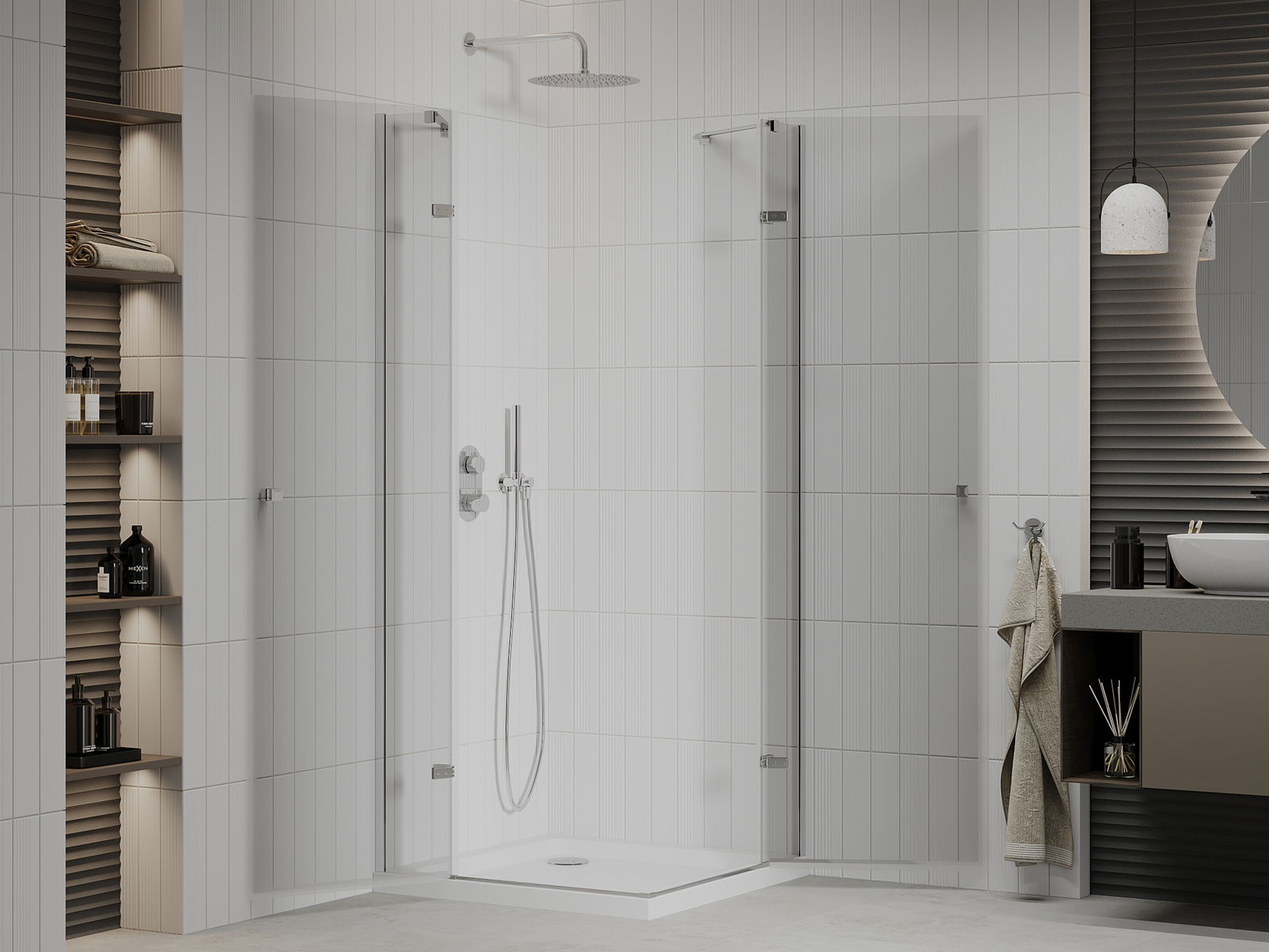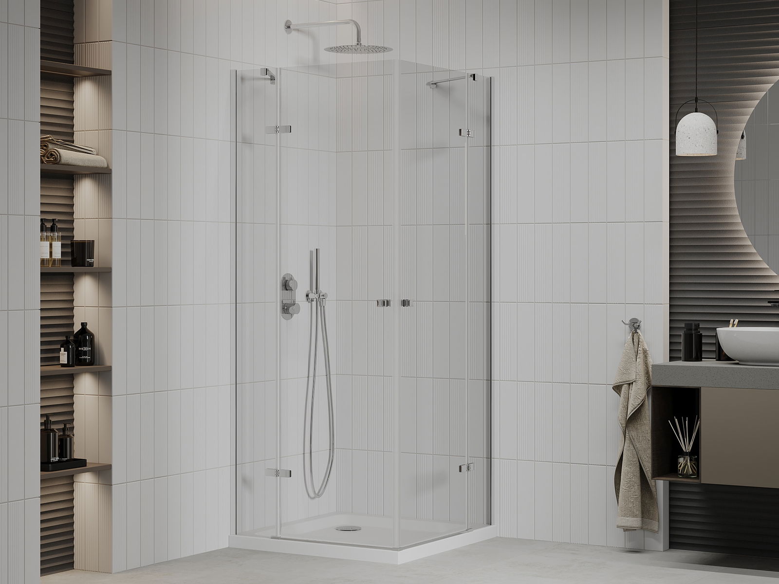 Mexen Roma Duo cabină de duș cu ușă batantă 70 x 70 cm, transparent, crom + cădiță Flat - 854-070-070-01-02-4010