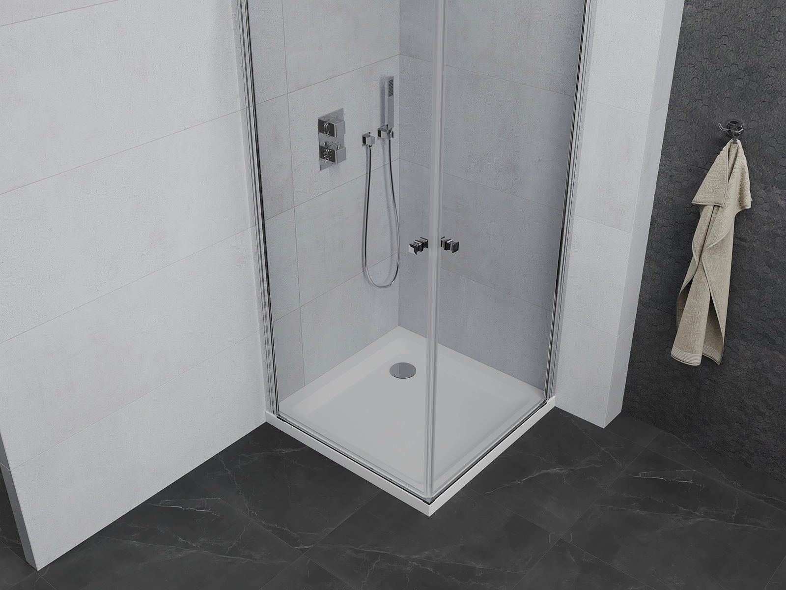 Cabină de duș cu uși batante Mexen Pretoria Duo 70 x 70 cm, transparent, cromat + cadă de duș Flat - 852-070-070-01-02-4010