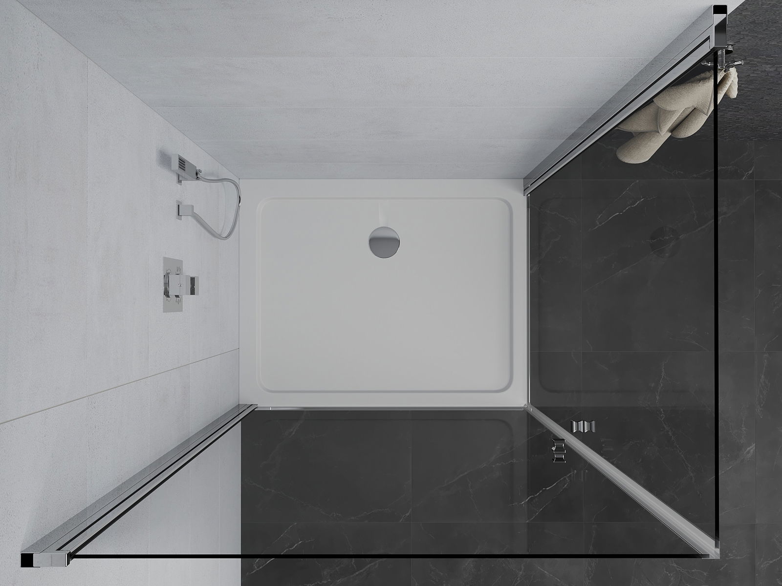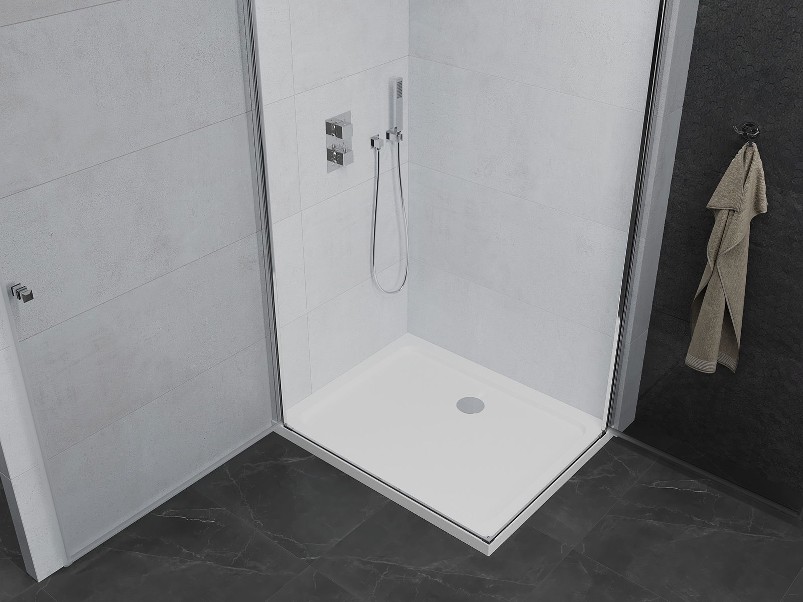 Mânerul la îndemână și confortabil era din metal durabil și rezistent. Forma la modă combinată cu un finisaj adaptat culorii profilurilor oferă întregului aspect modern și elegant, subliniind estetica fiecărei băi.