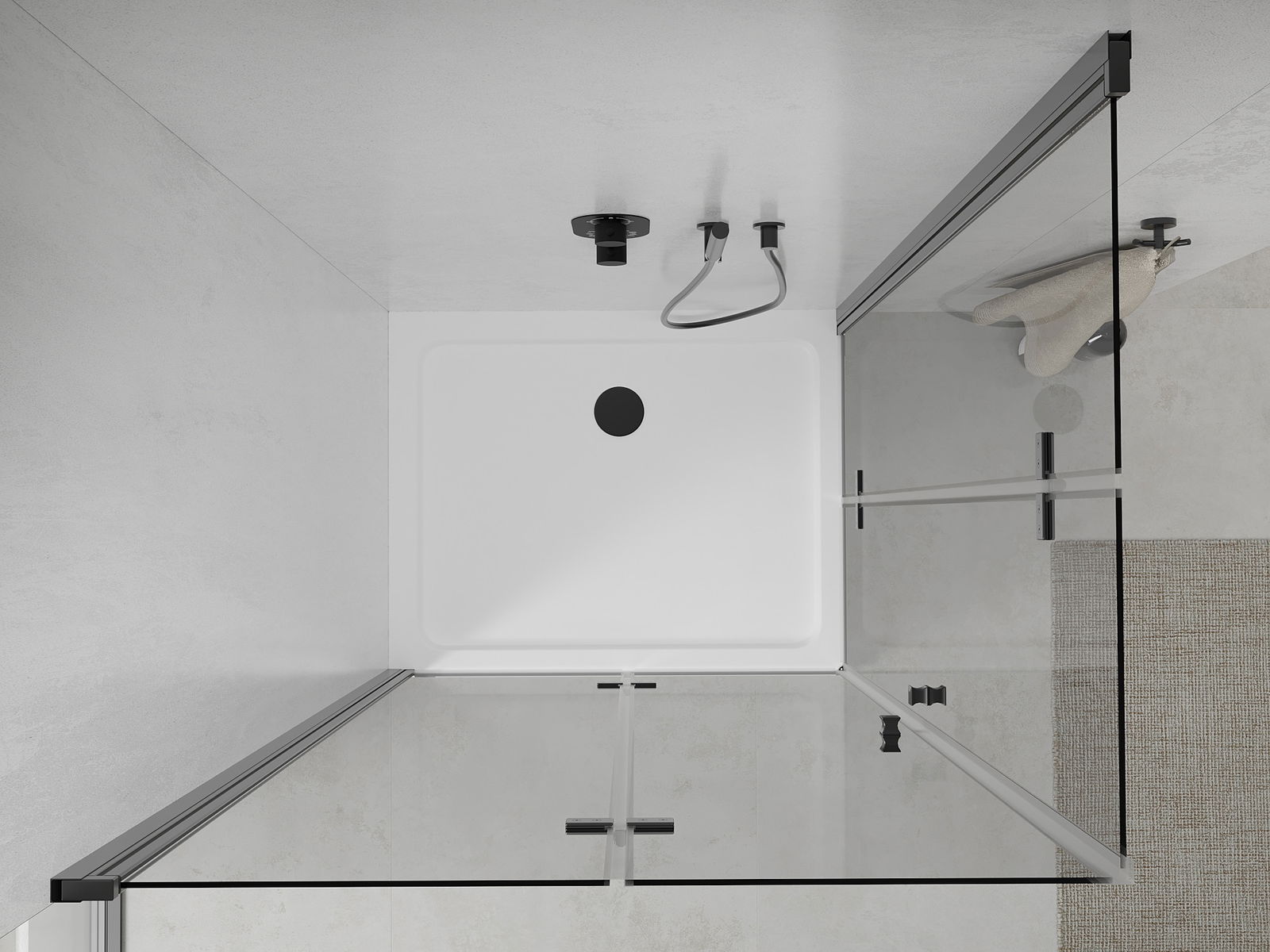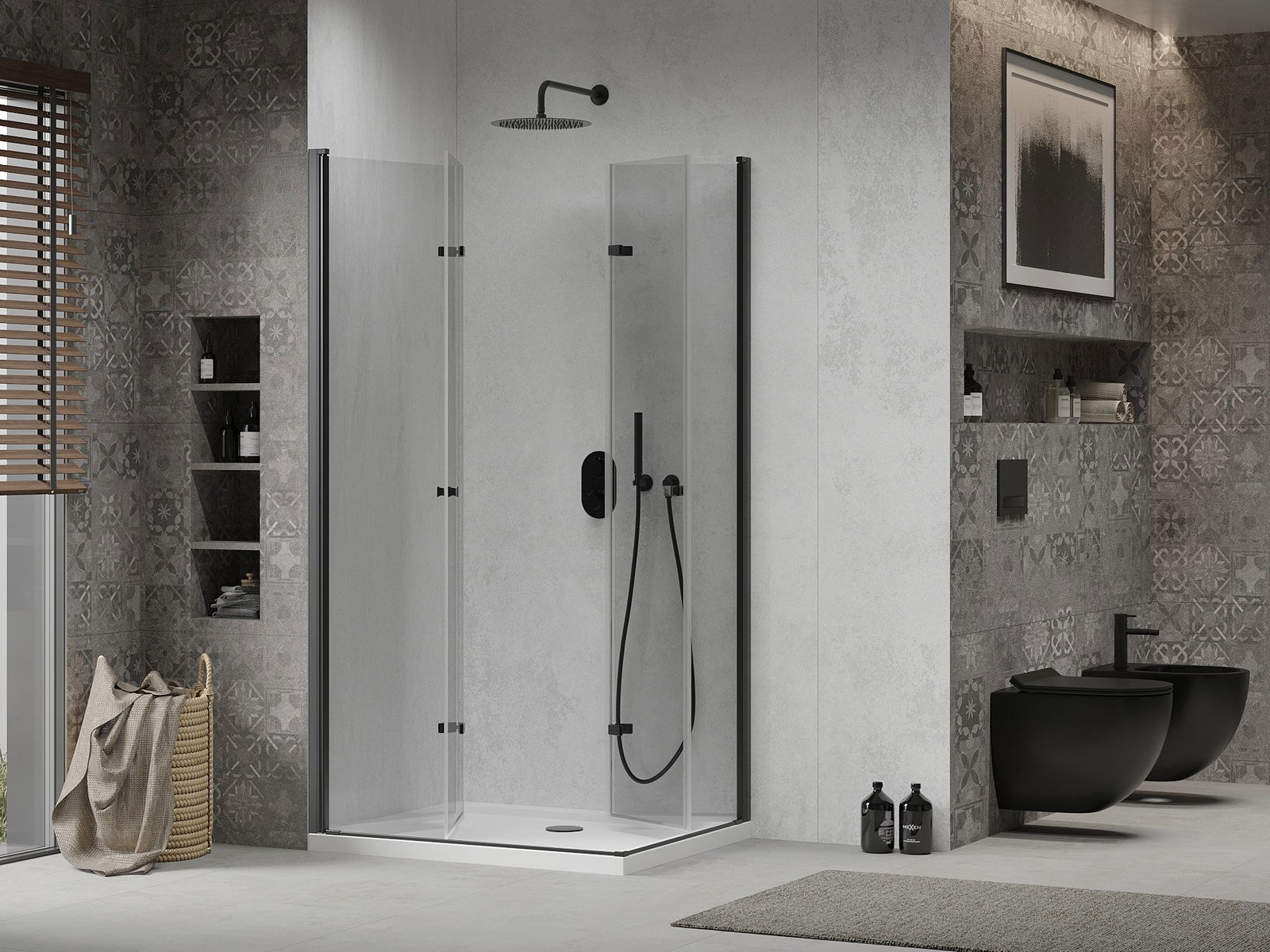 Mexen Lima Duo cabină de duș pliabilă 90 x 80 cm, transparent, negru + cadă de duș Flat - 856-090-080-70-02-4010B
