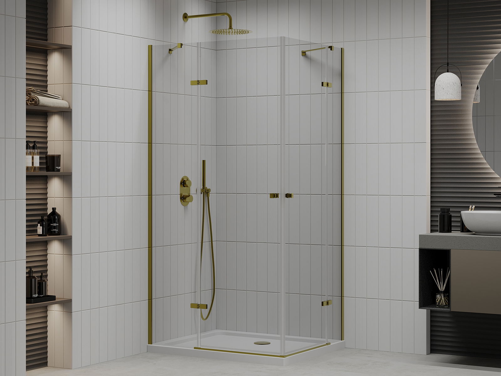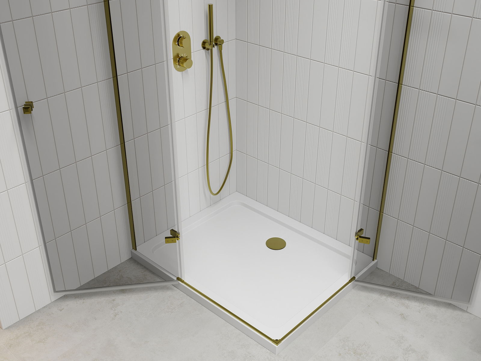 Mexen Roma Duo cabină de duș cu ușă batantă 90 x 80 cm, transparent, auriu + cădiță Flat - 854-090-080-50-02-4010G