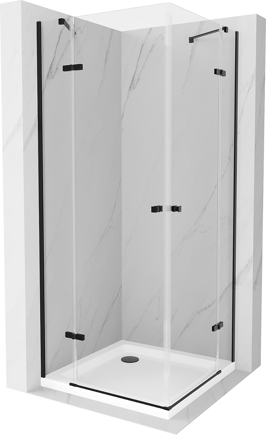 Mexen Roma Duo cabină de duș cu deschidere 100 x 100 cm, transparent, negru + cadă Flat - 854-100-100-70-02-4010B