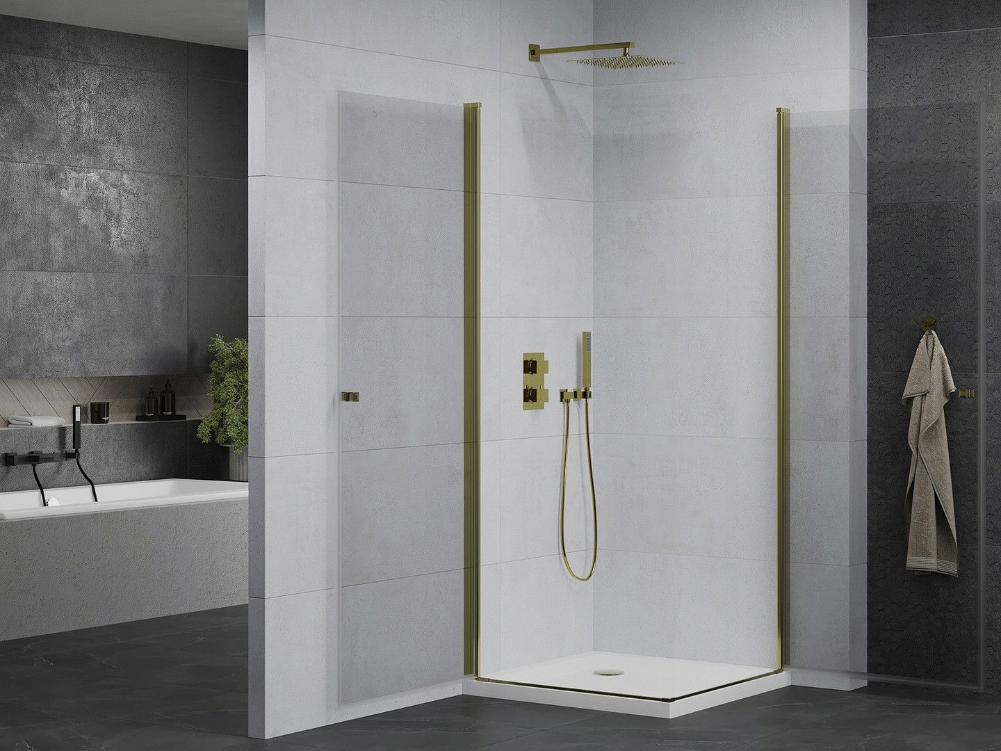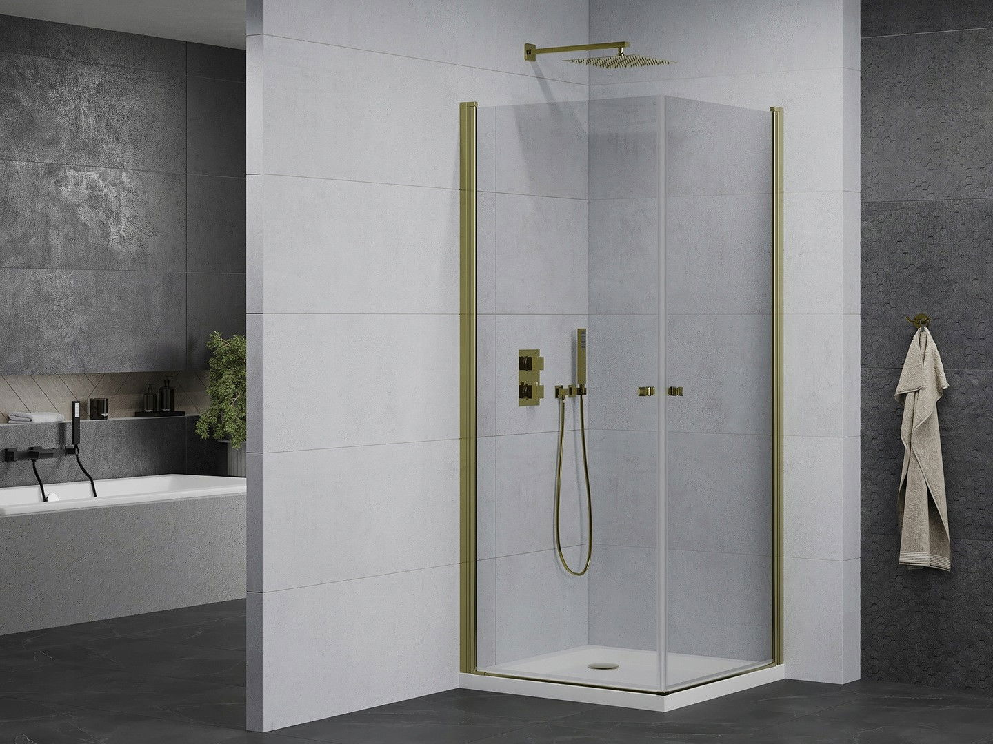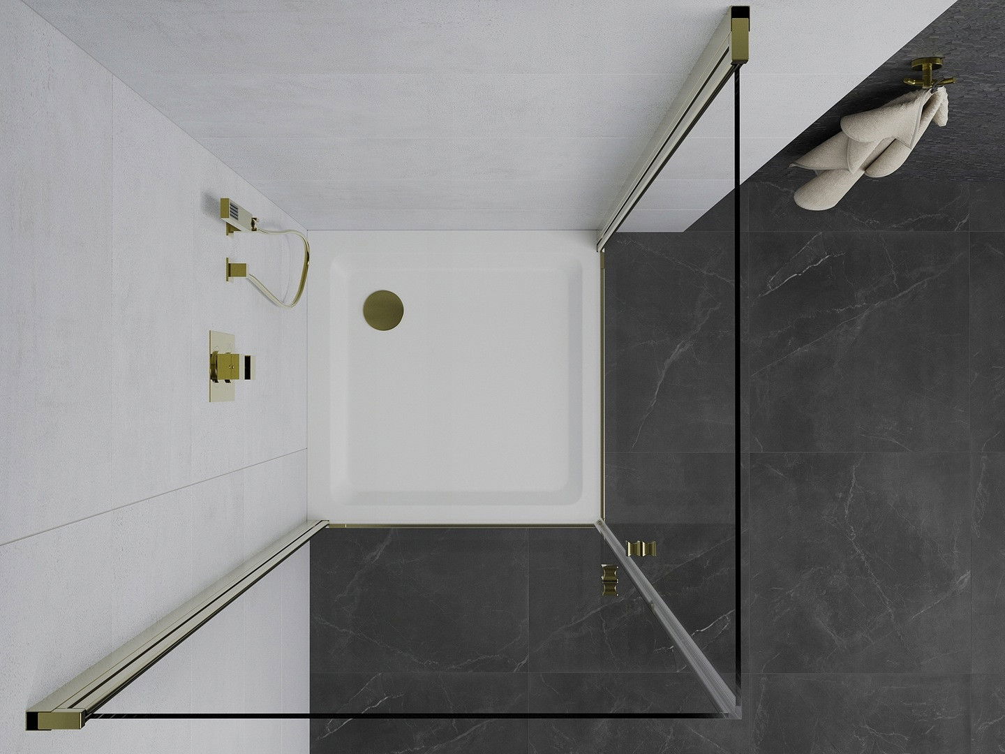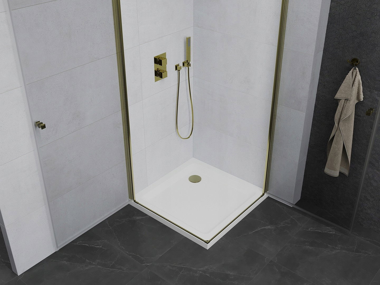 Mexen Pretoria Duo cabină de duș batantă 70 x 70 cm, transparentă, aurie + cadă Flat - 852-070-070-50-02-4010G