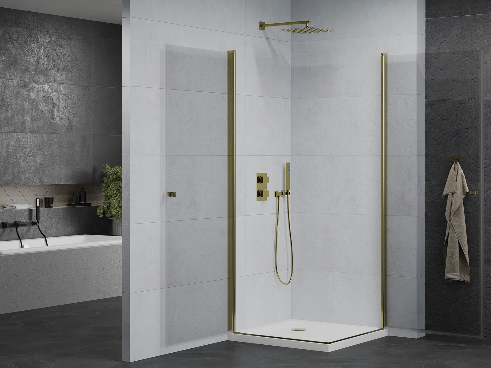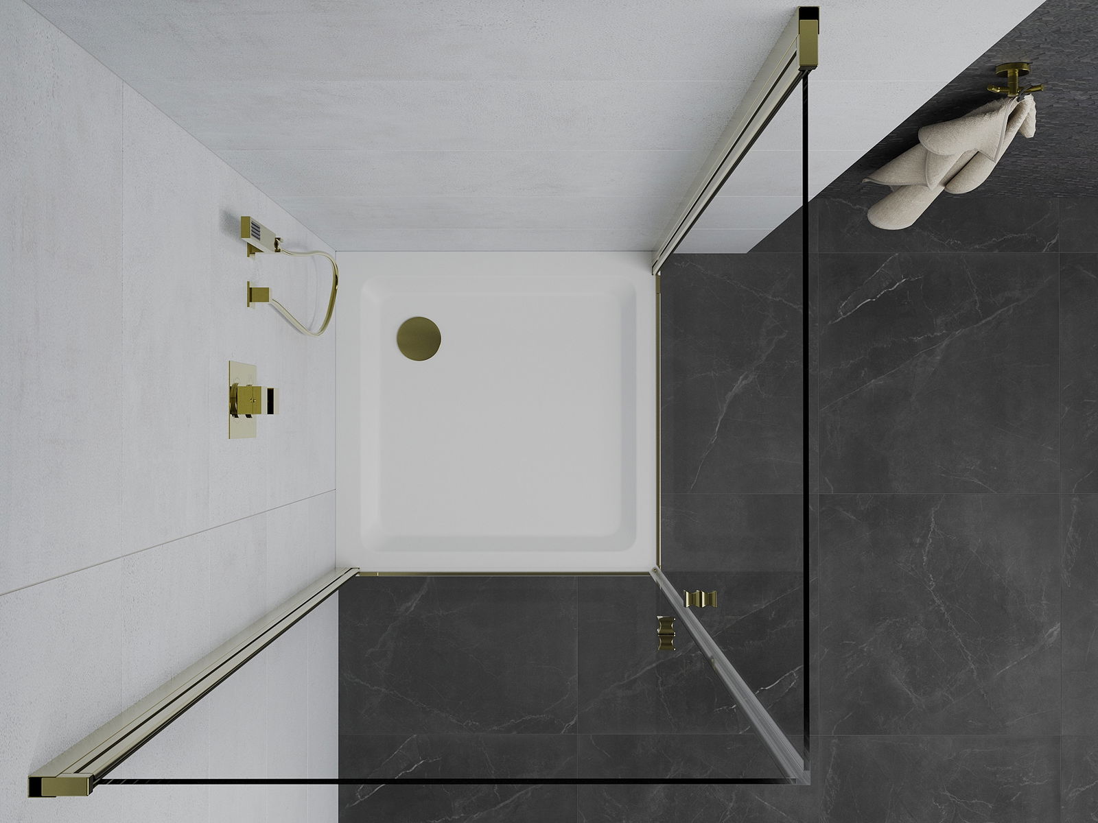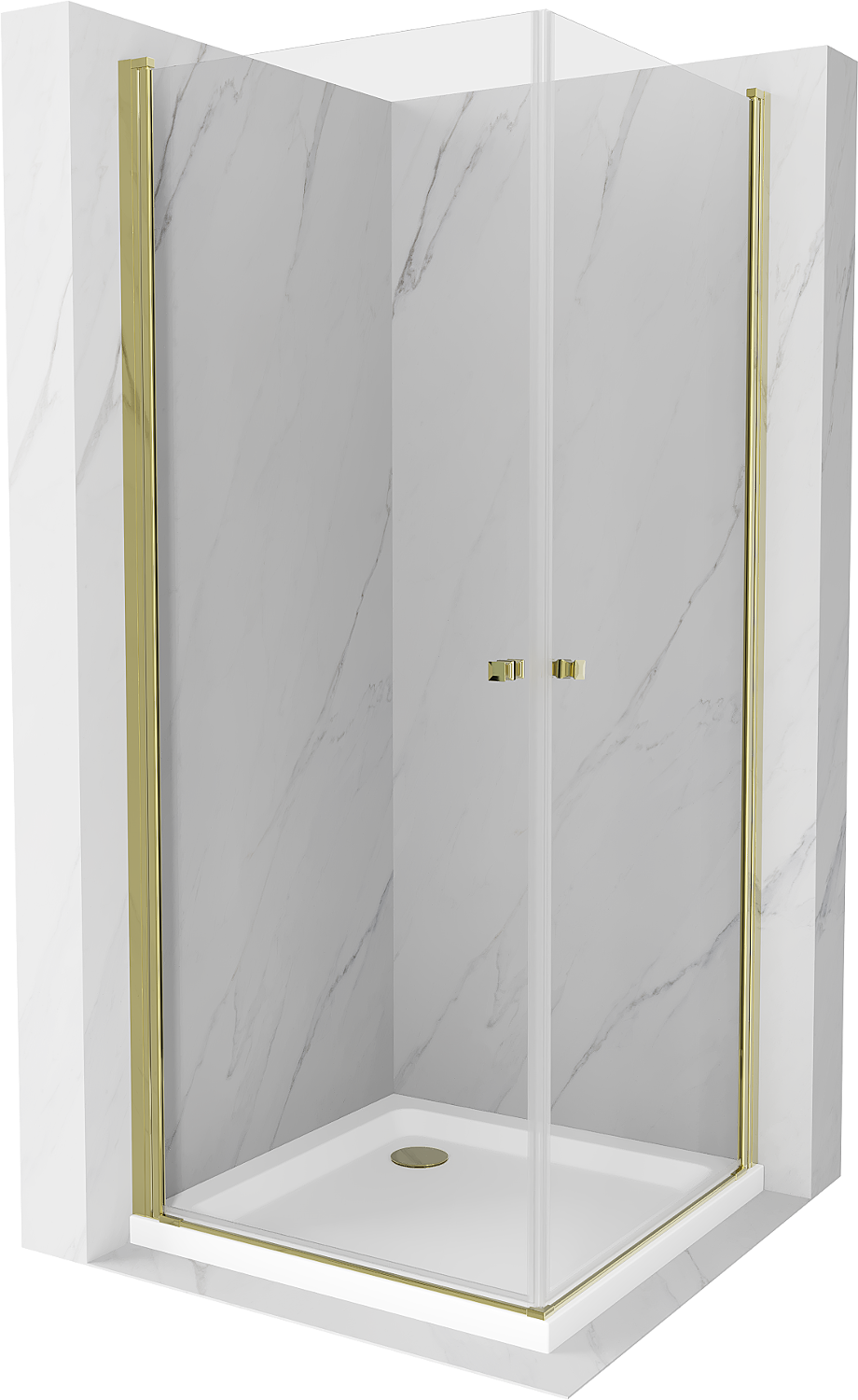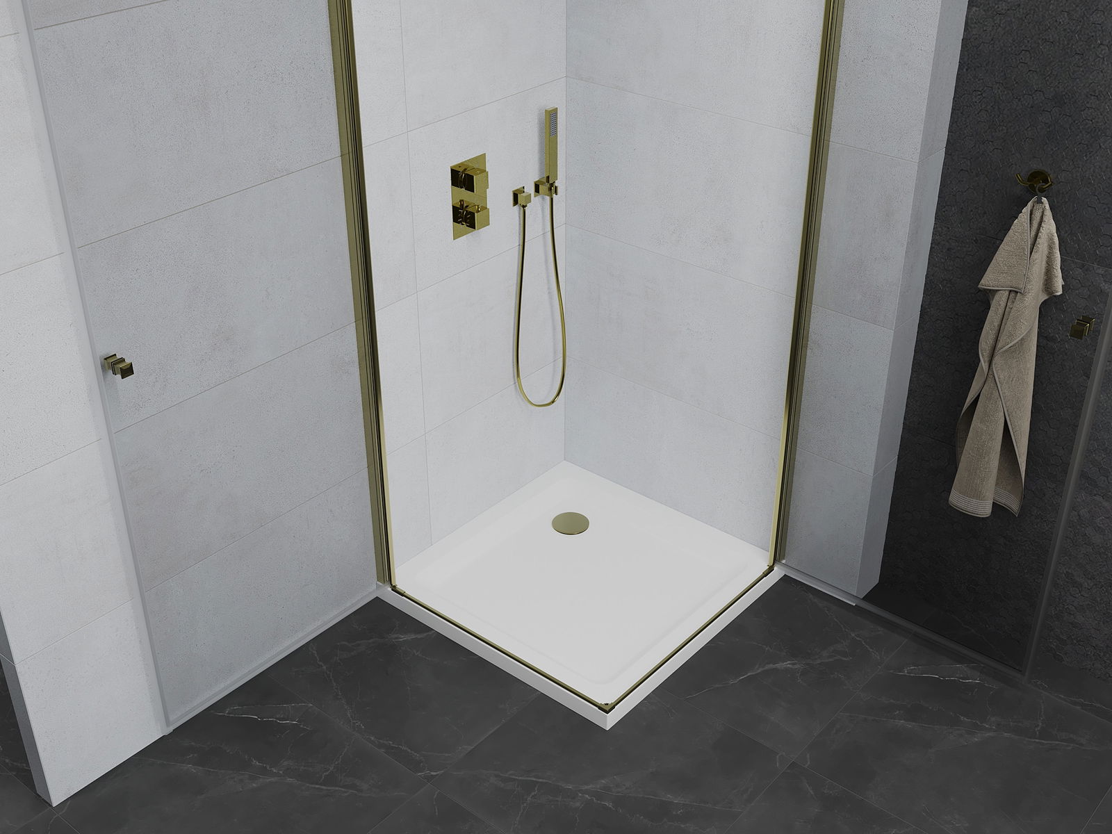 Mexen Pretoria Duo cabină de duș pivotantă 90 x 90 cm, transparentă, auriu + cădiță Flat - 852-090-090-50-02-4010G