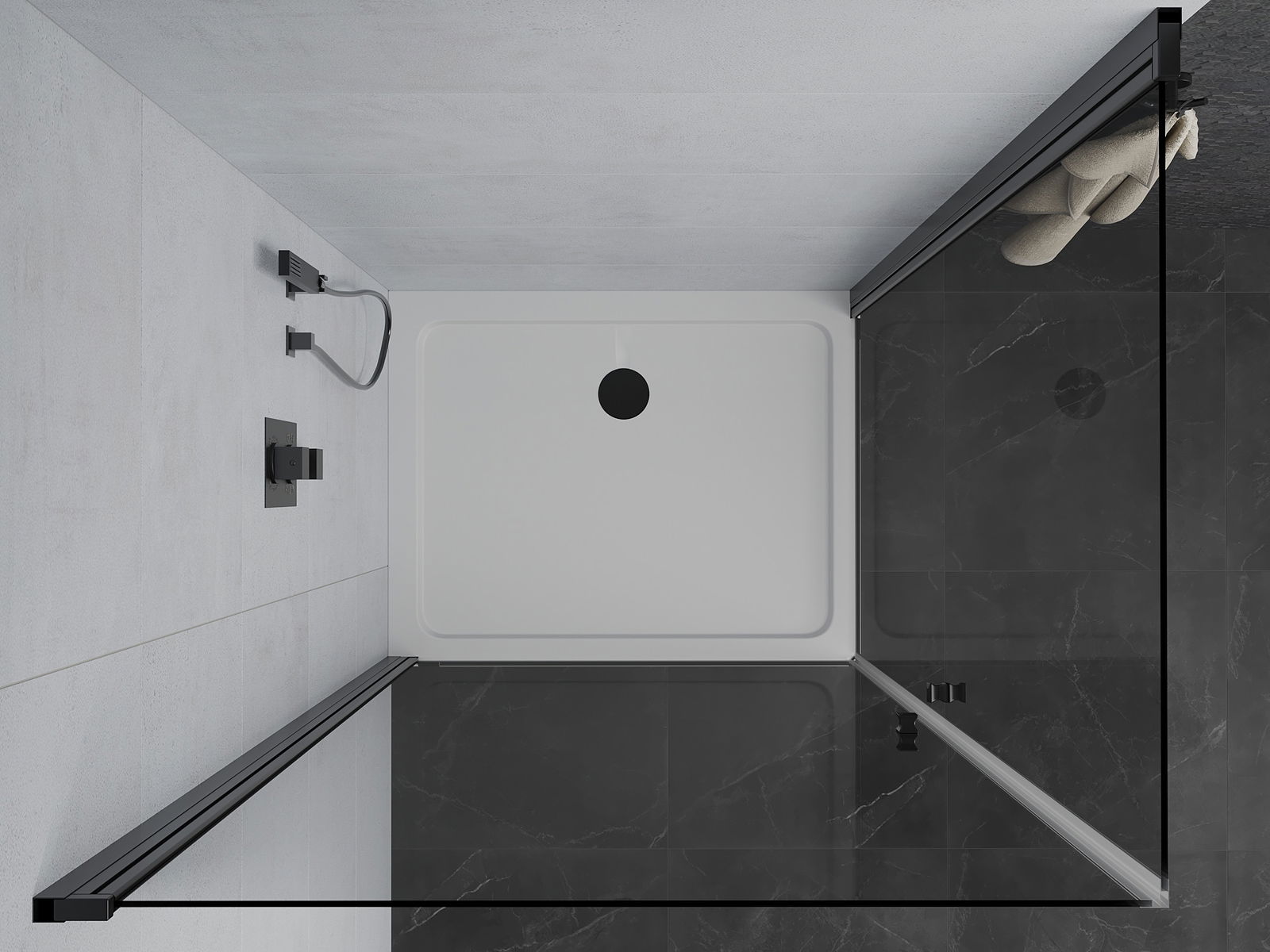 Mexen Pretoria Duo cabină de duș rabatabilă 80 x 70 cm, transparentă, neagră + cădiță Flat - 852-080-070-70-02-4010B
