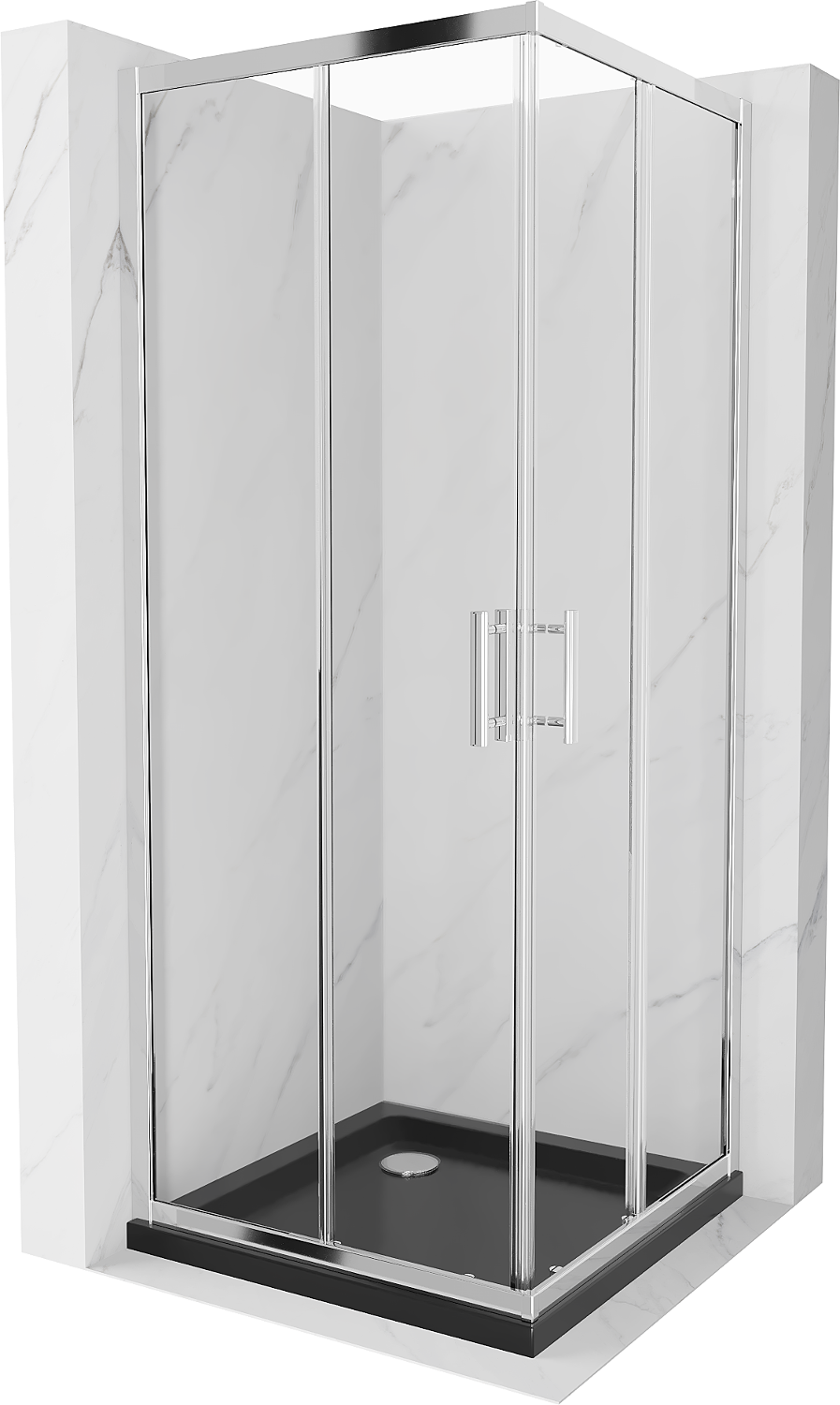 Mexen Rio cabină de duș pătrată 80 x 80 cm, transparentă, crom + cadă Flat, negru - 860-080-080-01-00-4070