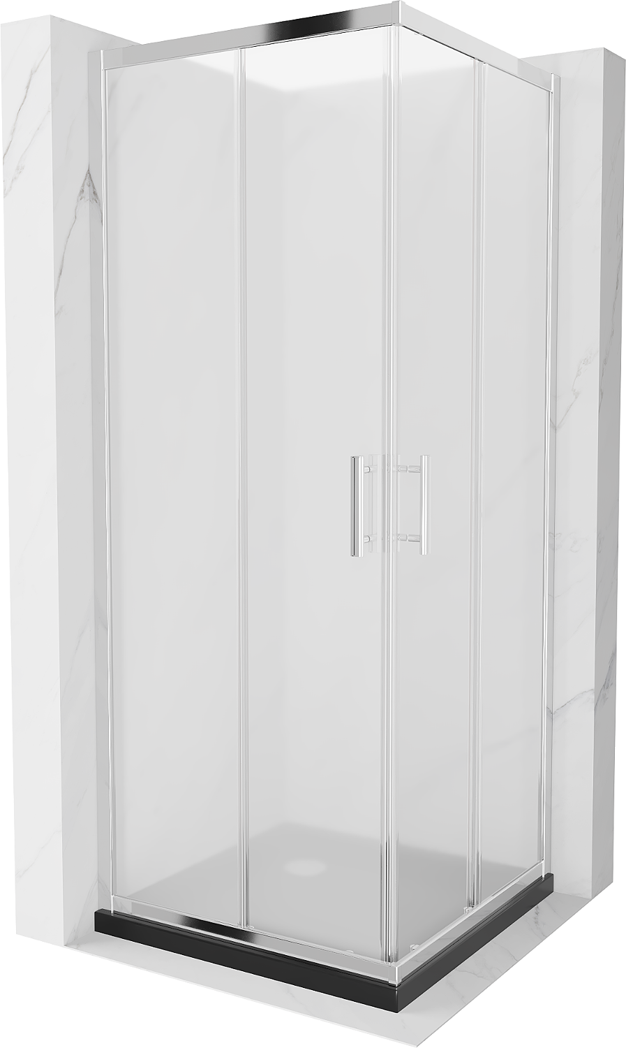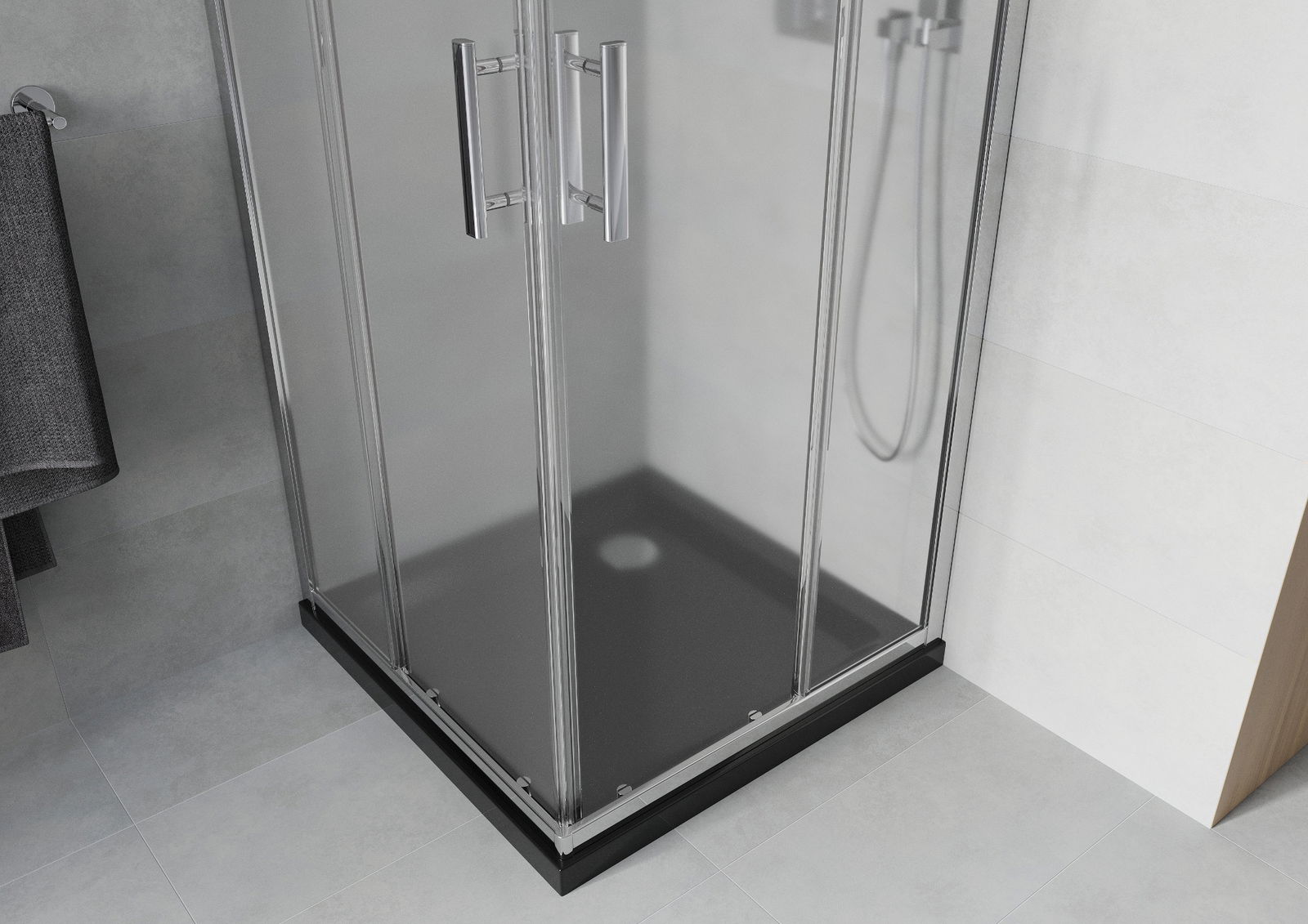 Mexen Rio cabina de duș pătrată 80 x 80 cm, mat, crom + cadă Flat, negru - 860-080-080-01-30-4070