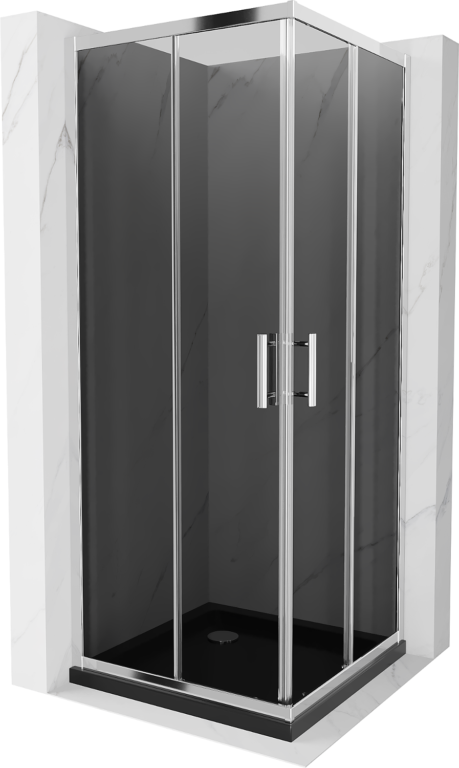 Mexen Rio cabină de duș pătrată 80 x 80 cm, grafit, crom + cadă plată, negru - 860-080-080-01-40-4070