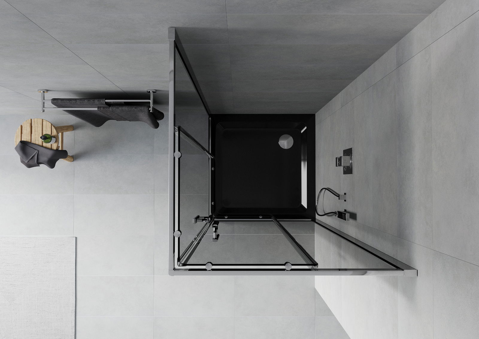 Cabină de duș pătrată Mexen Rio 90 x 90 cm, grafit, crom + cadă de duș Flat, negru - 860-090-090-01-40-4070