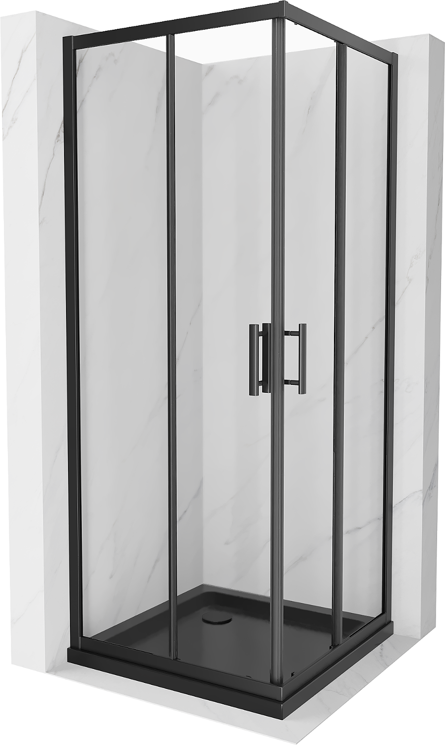 Mexen Rio cabină de duș pătrată 80 x 80 cm, transparentă, neagră + cadă Flat, neagră - 860-080-080-70-00-4070B