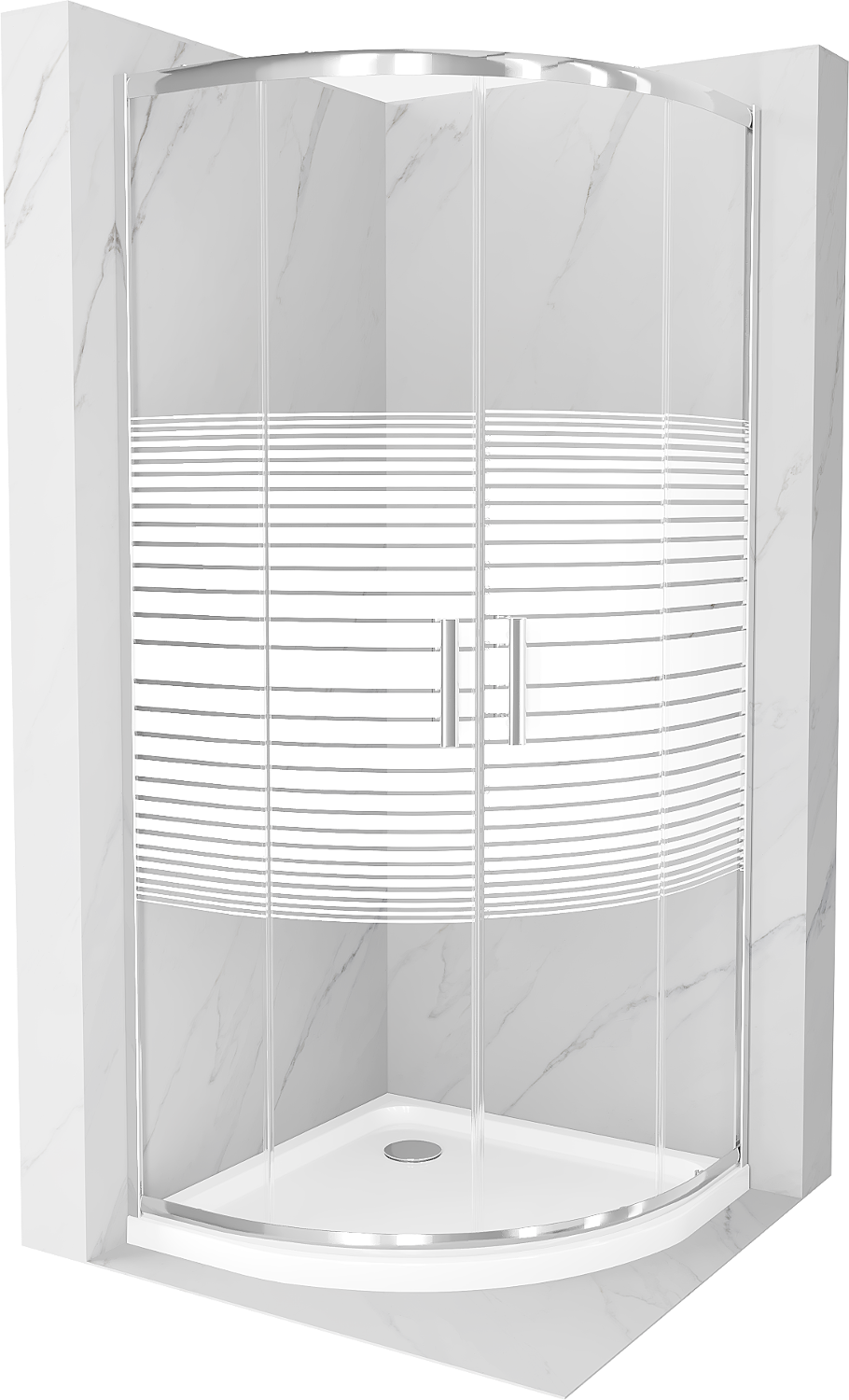 Cabină de duș semirotundă Mexen Rio 90 x 90 cm, dungi albe, crom + cadă Flat, alb - 863-090-090-01-20-4110