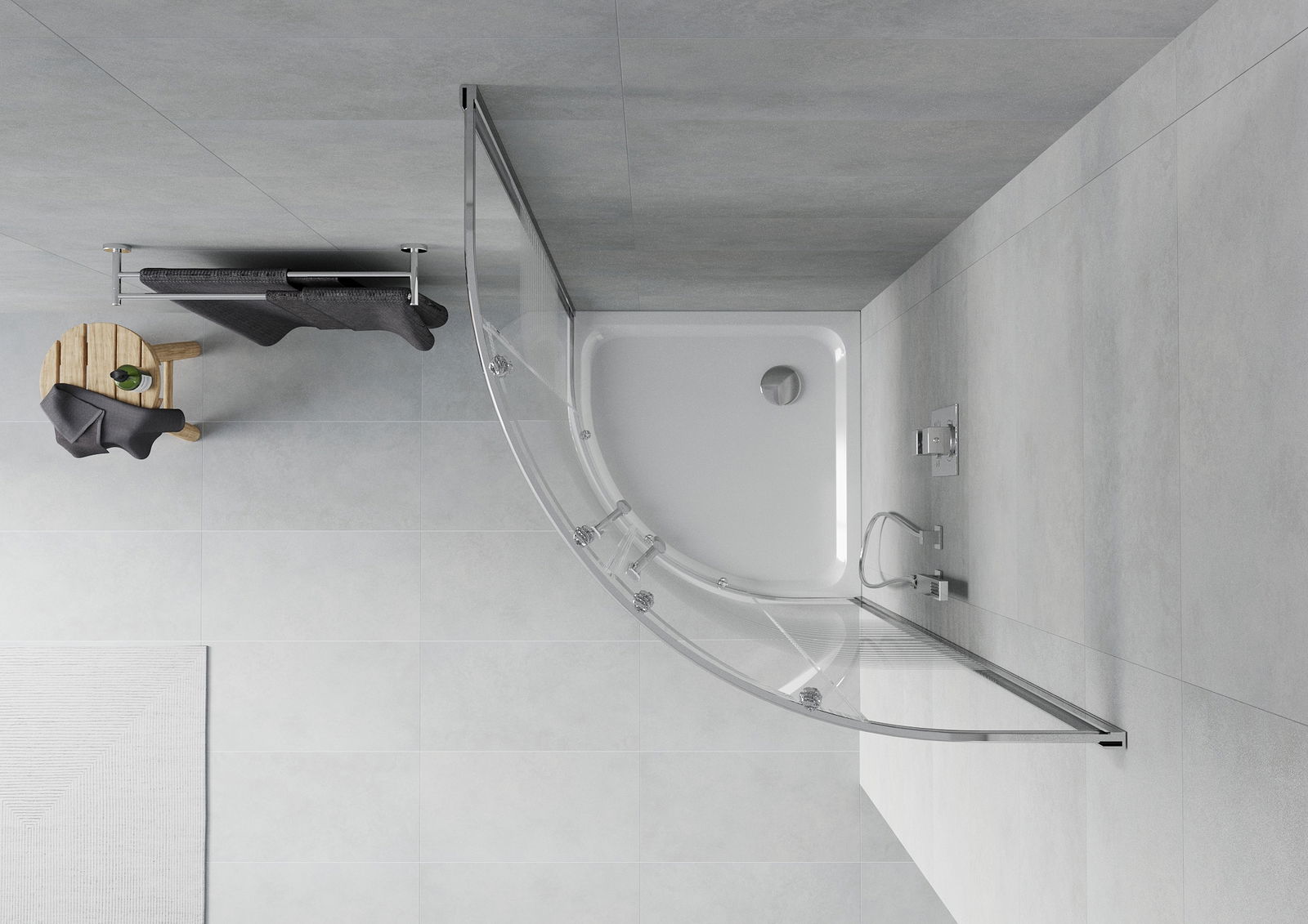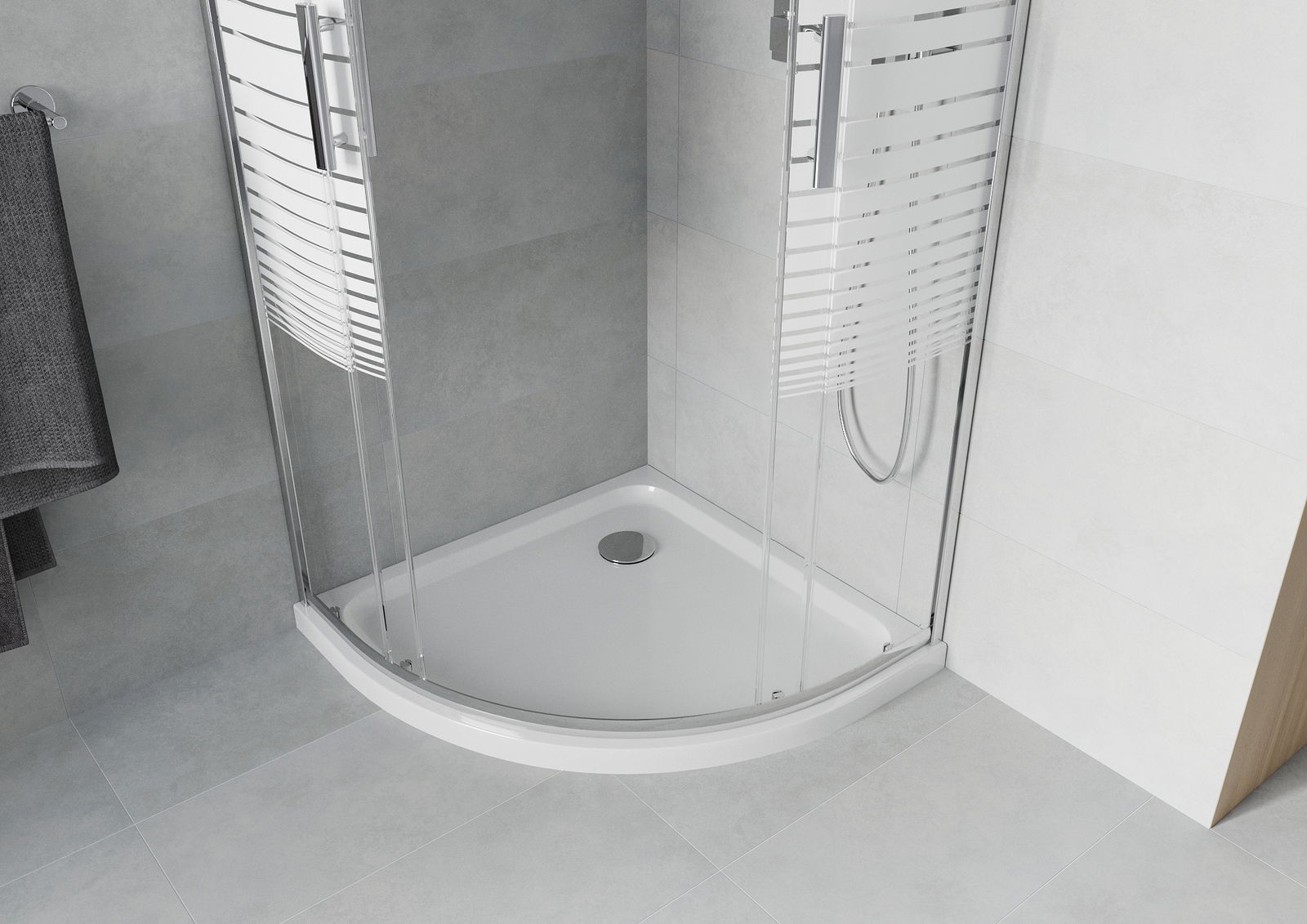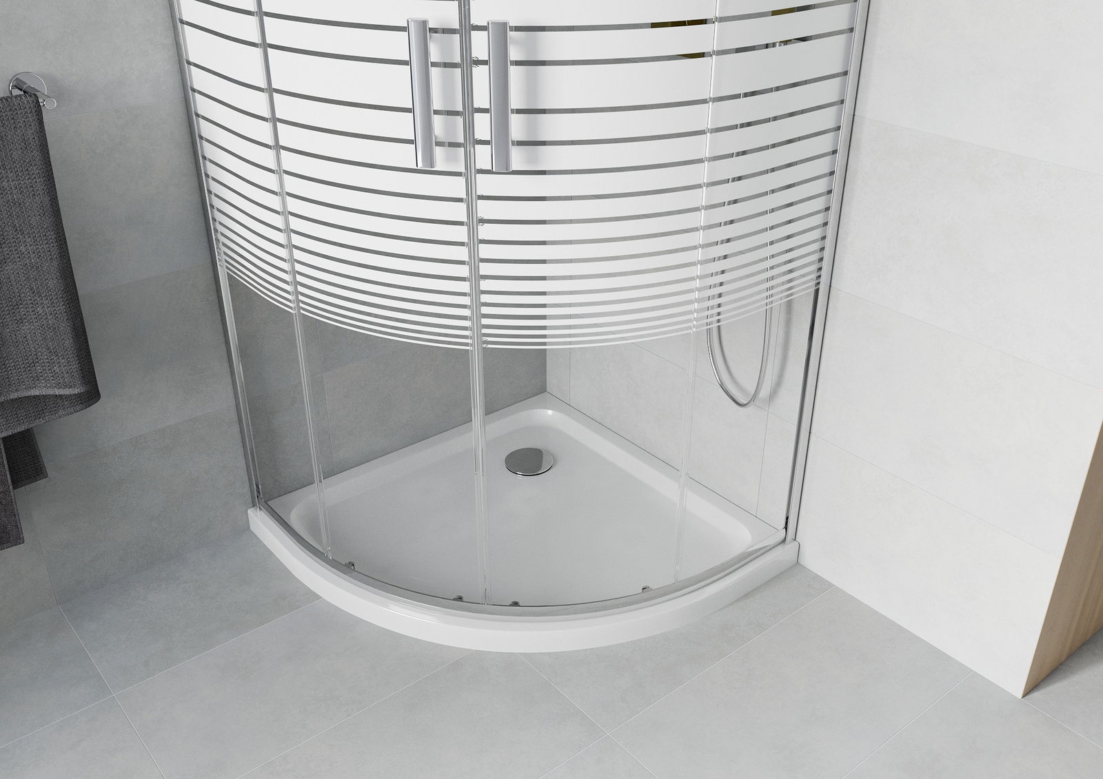 Mexen Rio cabina de duș semirotundă 90 x 90 cm, dungi albe, crom + cadă Flat, alb - 863-090-090-01-20-4110