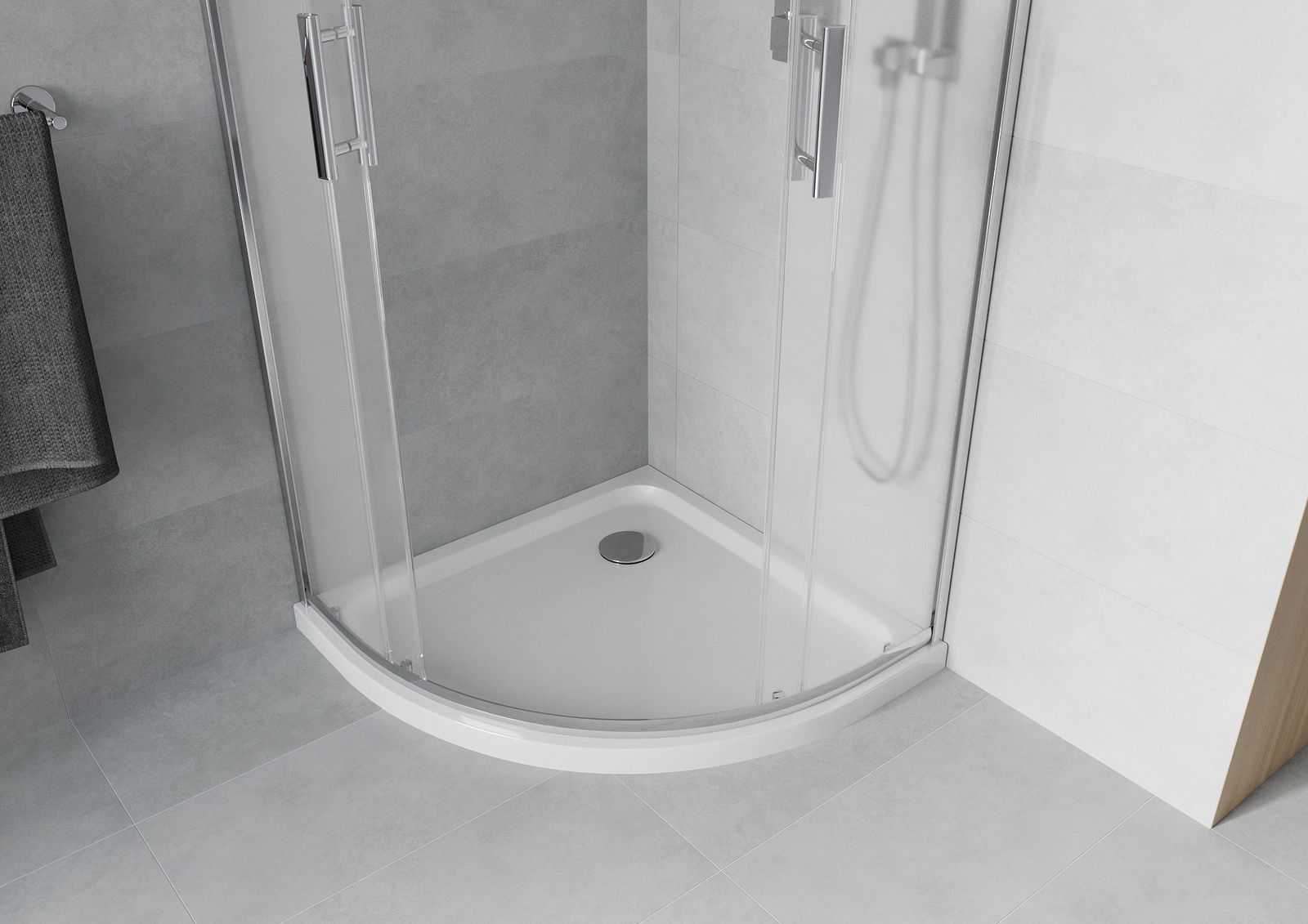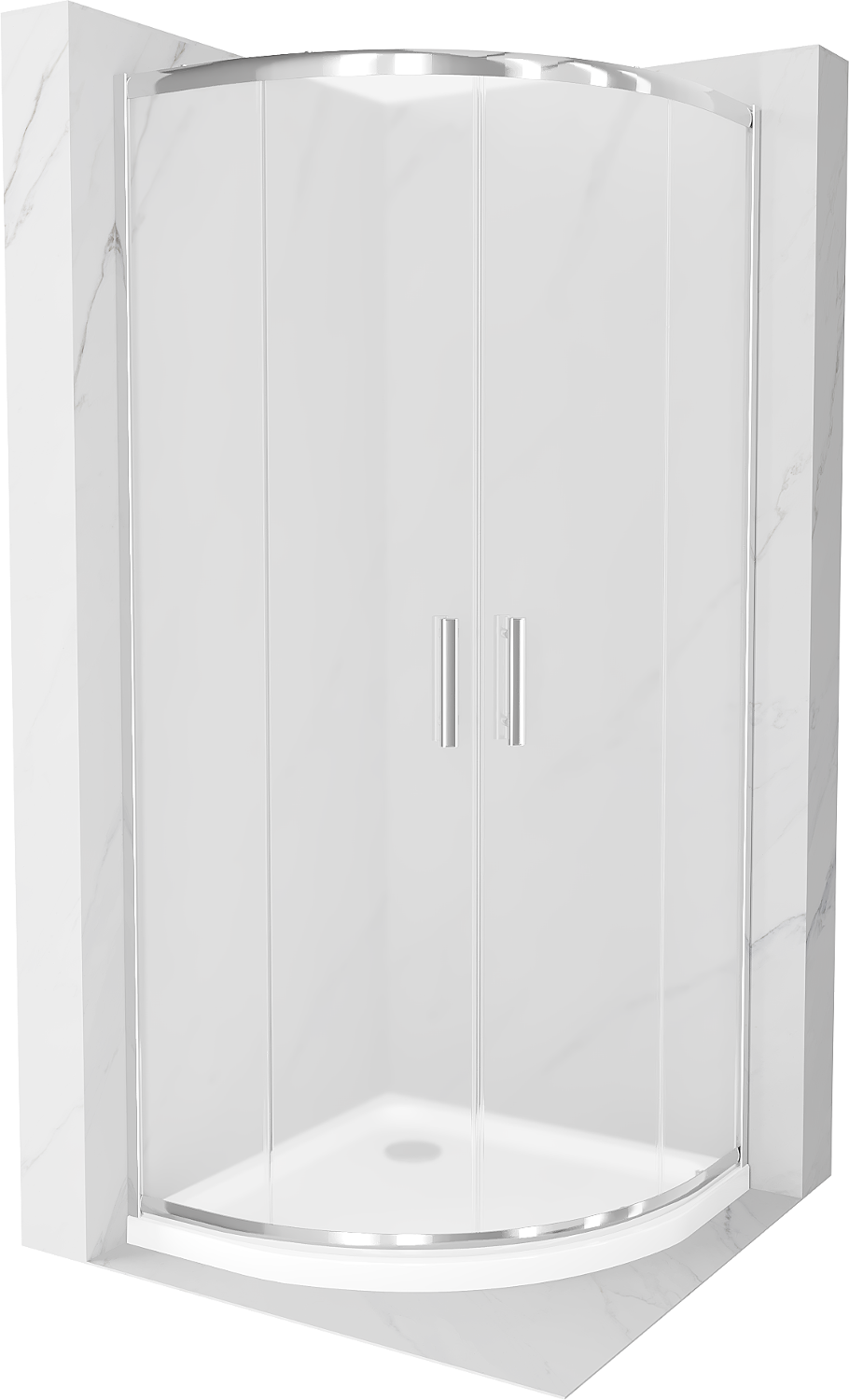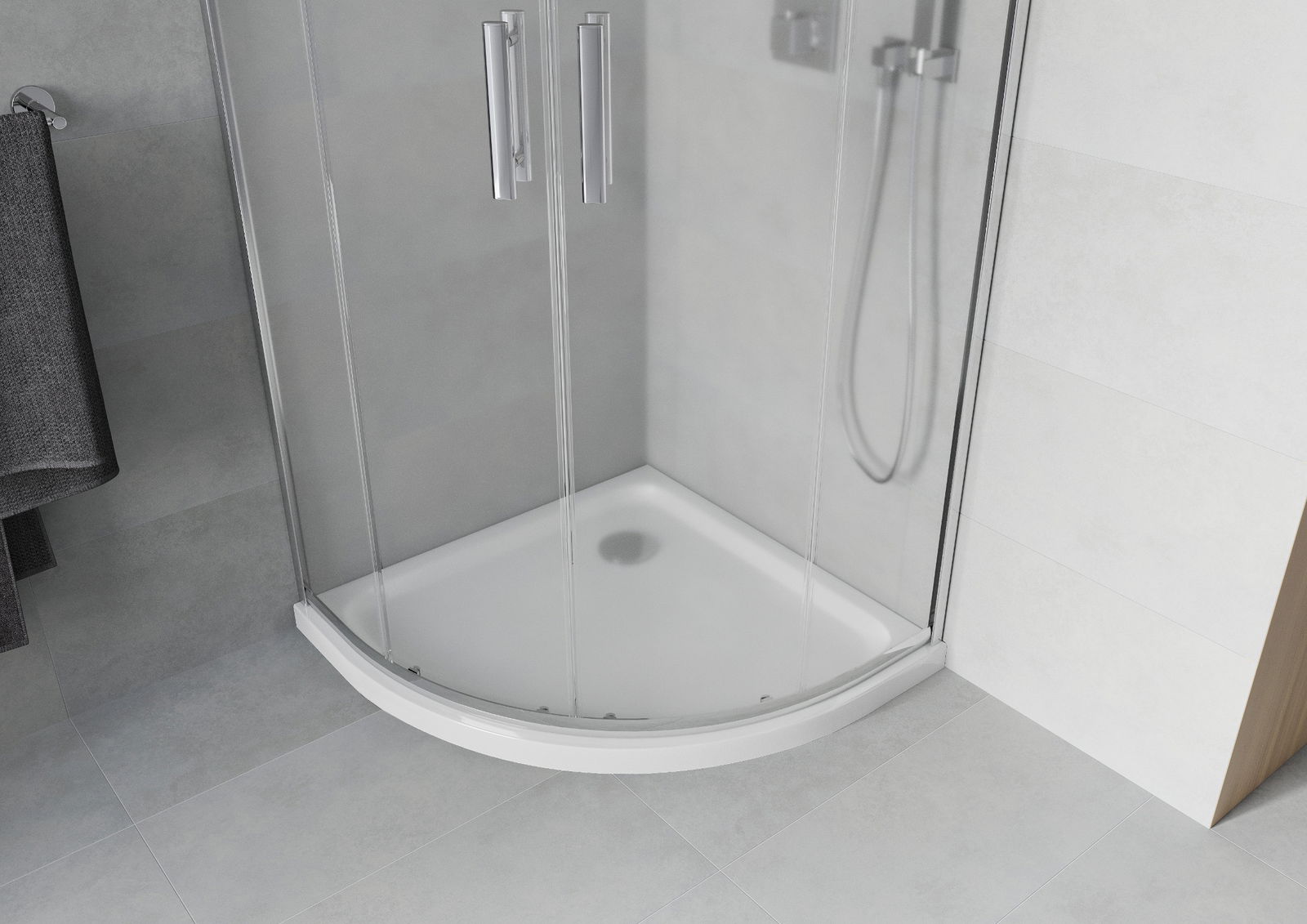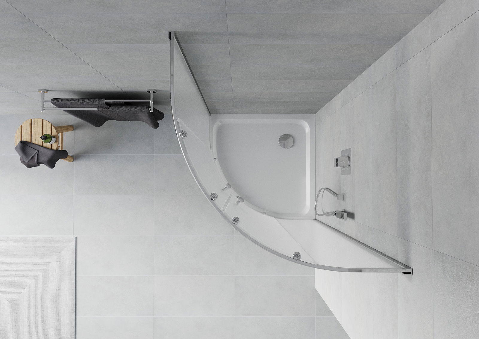 Mexen Rio cabina de duș semirotundă 80 x 80 cm, mat, crom + cadă Flat, alb - 863-080-080-01-30-4110