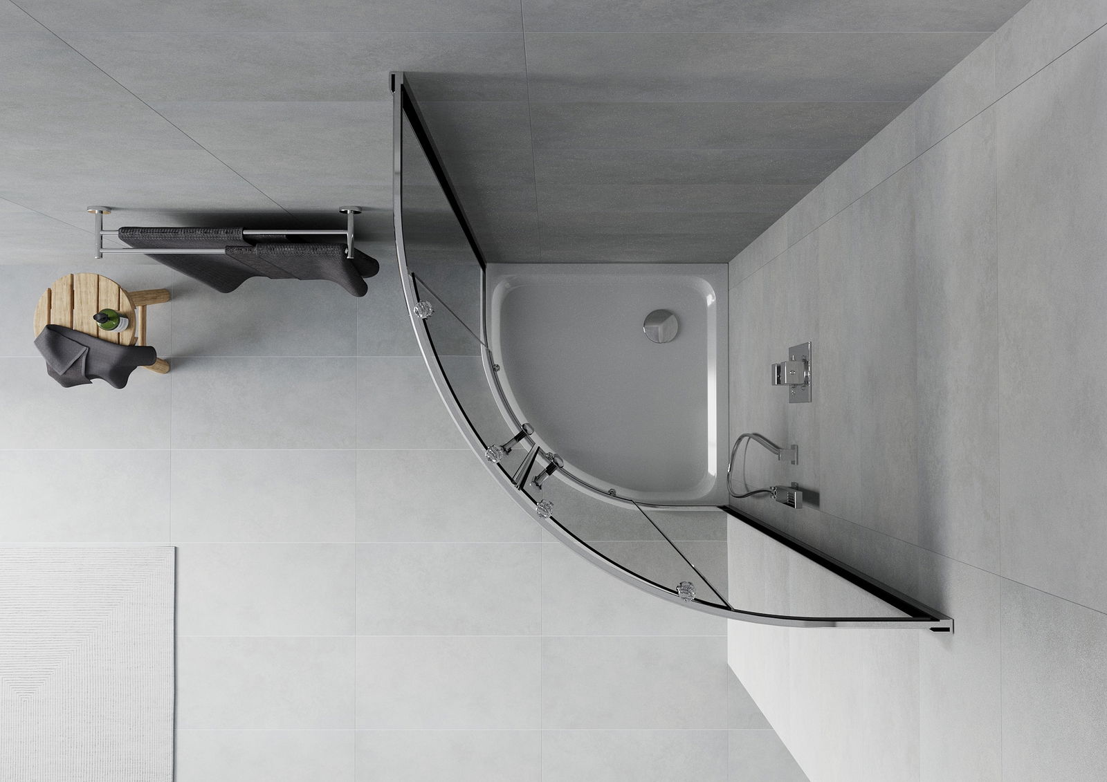 Mexen Rio cabină de duș semicirculară 80 x 80 cm, grafit, crom + cadă Flat, alb - 863-080-080-01-40-4110