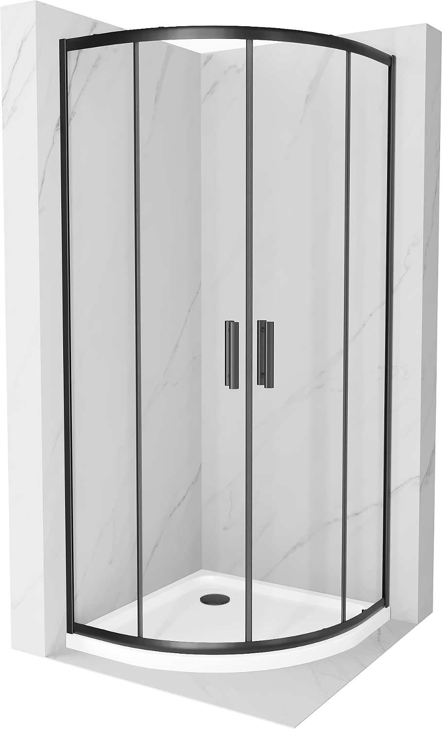 Mexen Rio cabină de duș semicirculară 90 x 90 cm, transparent, negru + cadă de duș Flat, alb - 863-090-090-70-00-4110B