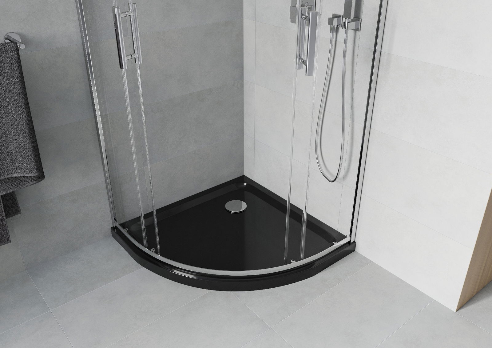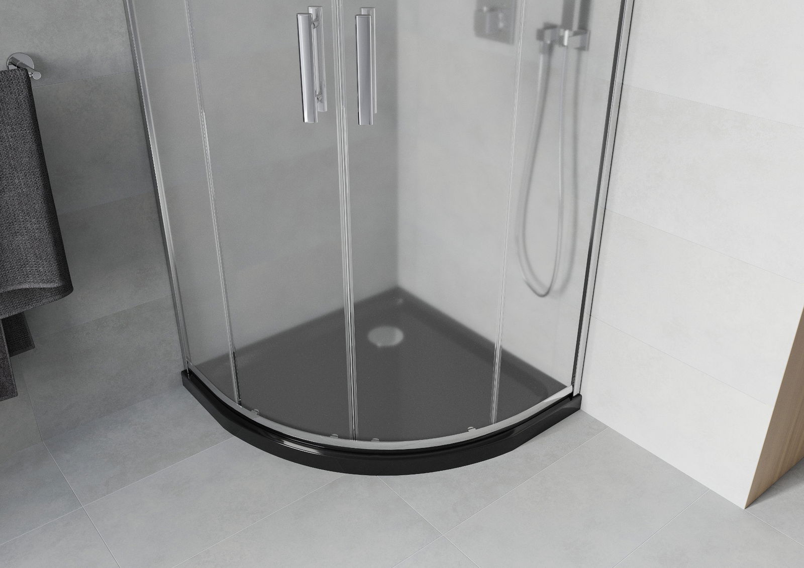 Mexen Rio cabină de duș semicirculară 80 x 80 cm, transparentă, crom + cadă Flat, neagră - 863-080-080-01-00-4170