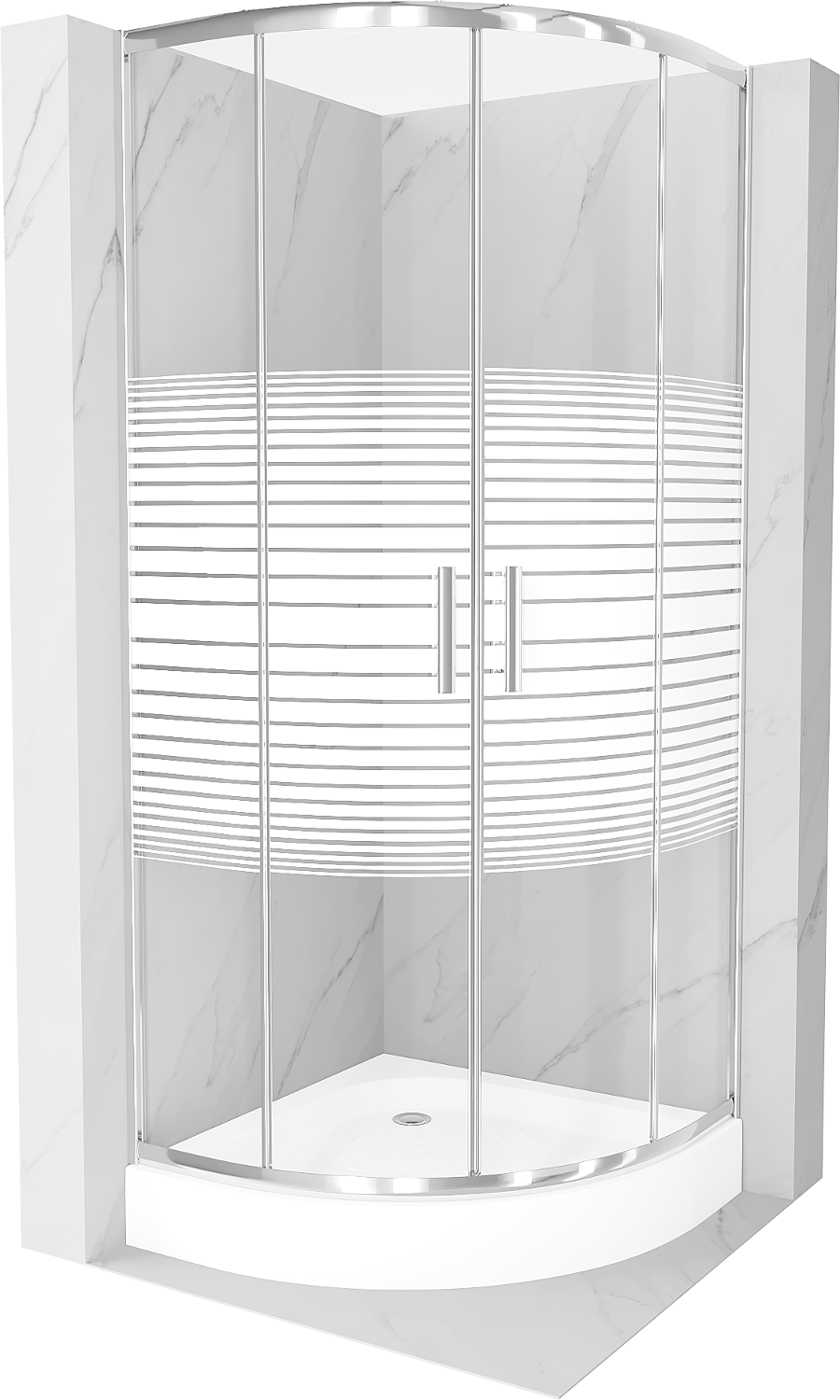 Cabină de duș semicirculară Mexen Rio 70 x 70 cm, dungi albe, crom + cadă Rio, alb - 863-070-070-01-20-4710