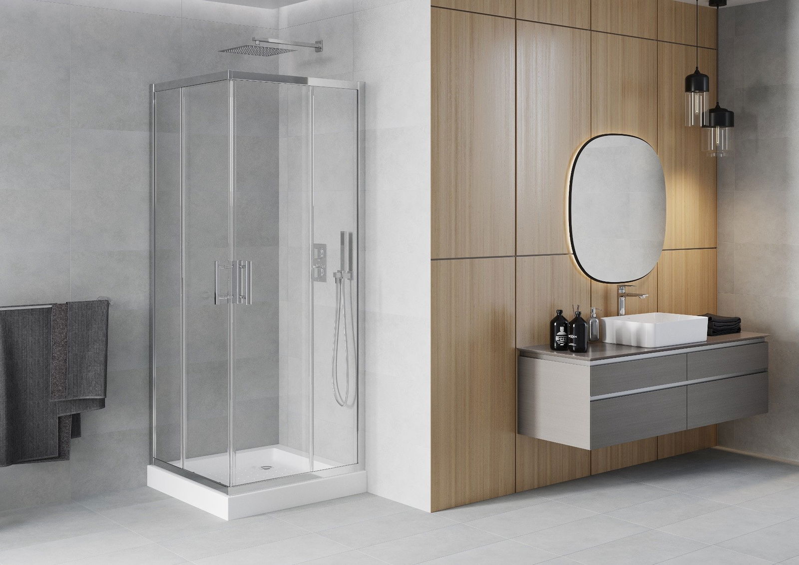 Ușile glisante se deplasează în jurul ghidurilor speciale și nu necesită spațiu suplimentar pentru a le deschide, astfel încât vor funcționa în băi mai mici. Datorită rolelor duble din plastic durabil, mișcarea lor este fluidă.