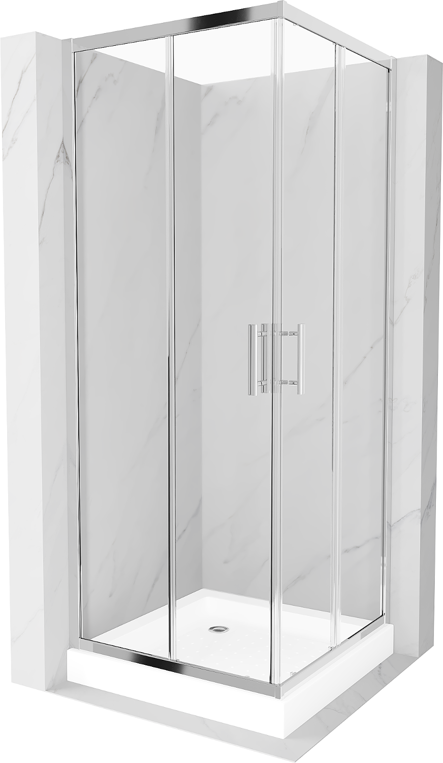 Mexen Rio cabină de duș pătrată 80 x 80 cm, transparent, crom + cadă Rio, alb - 860-080-080-01-00-4510