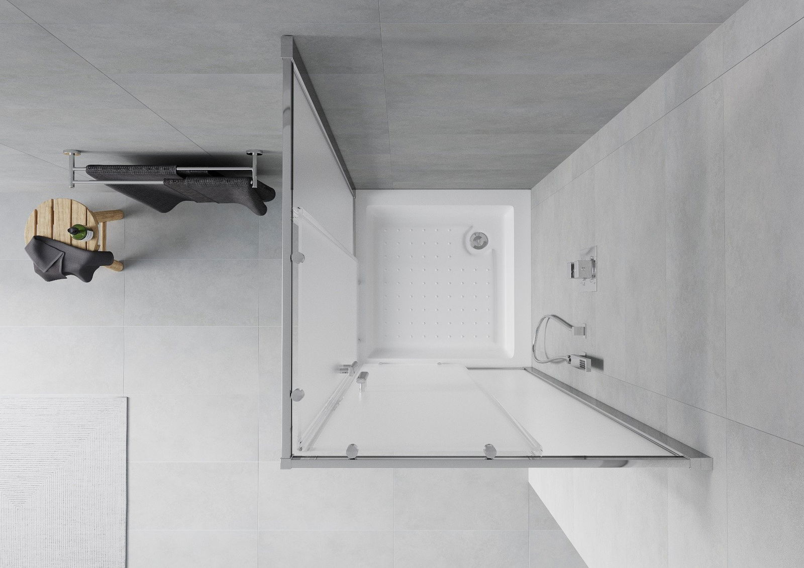 Cabină de duș pătrată Mexen Rio 80 x 80 cm, mat, crom + cadă de duș Rio, alb - 860-080-080-01-30-4510