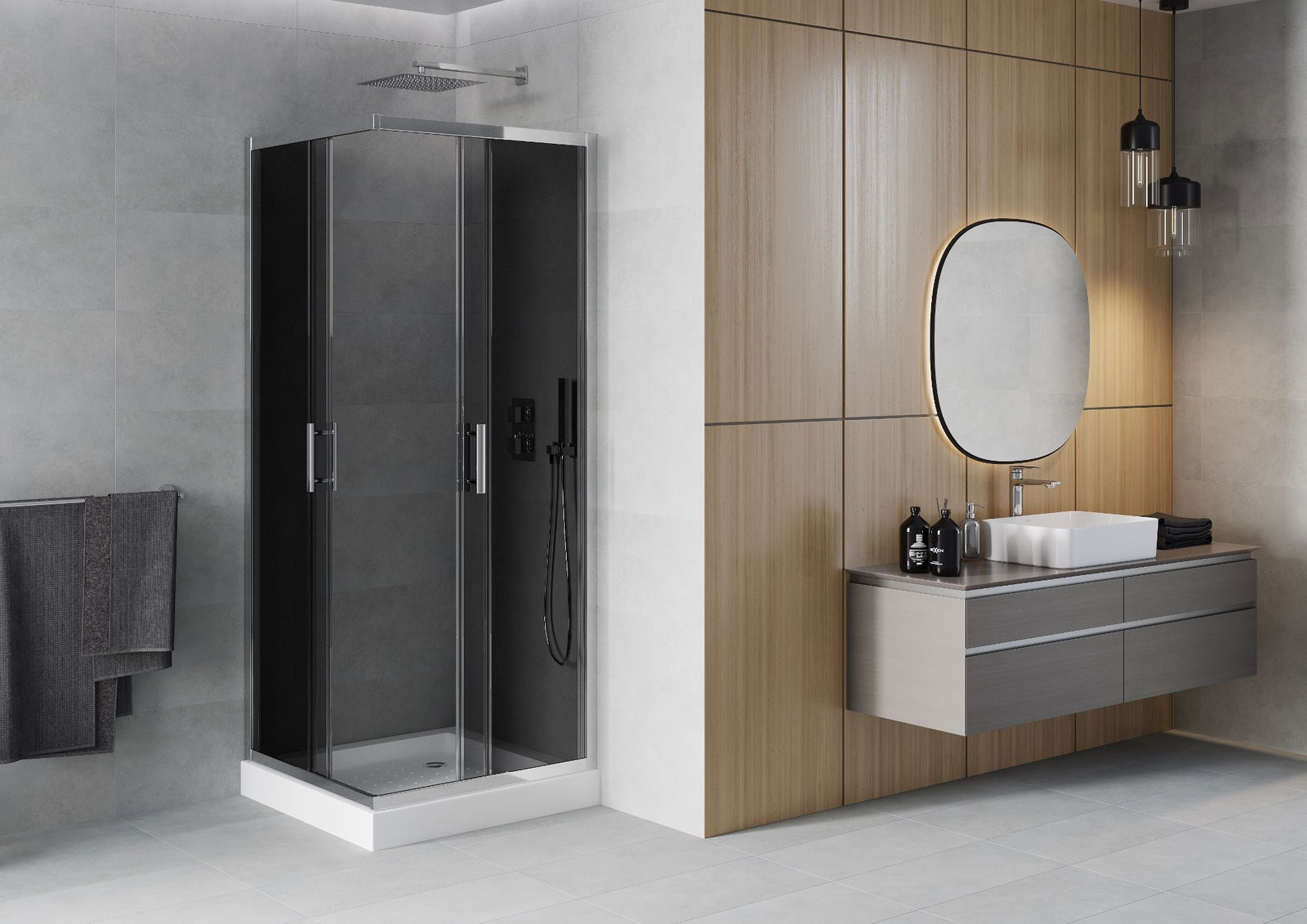 Ușile glisante se deplasează în jurul ghidurilor speciale și nu necesită spațiu suplimentar pentru a le deschide, astfel încât vor funcționa în băi mai mici. Datorită rolelor duble din plastic durabil, mișcarea lor este fluidă.