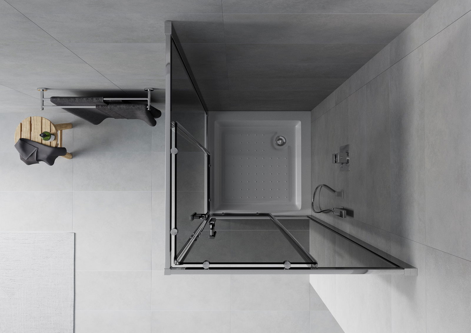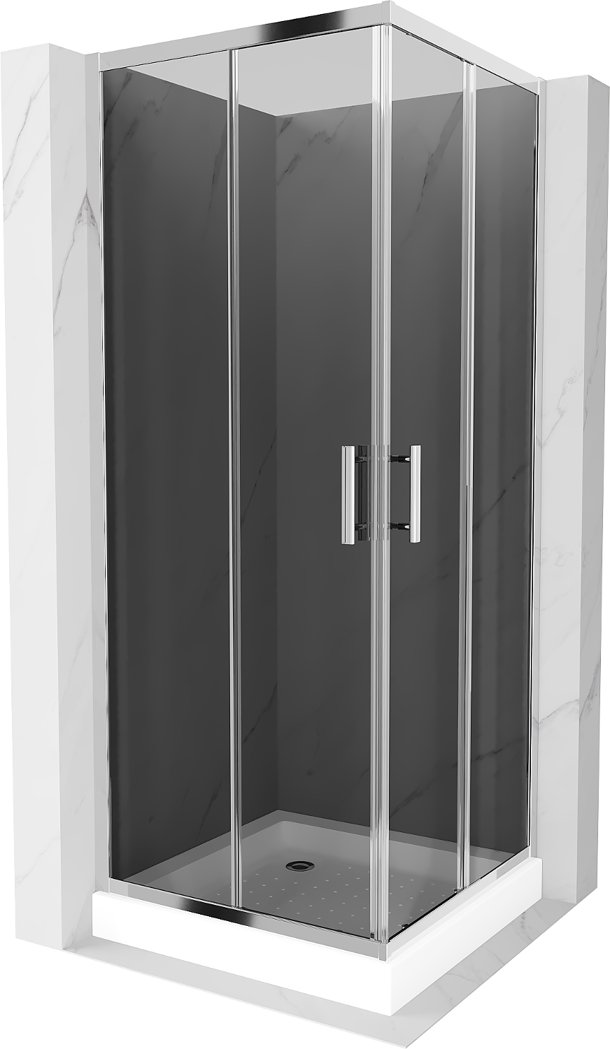 Mexen Rio cabină de duș pătrată 80 x 80 cm, grafit, crom + cadă Rio, alb - 860-080-080-01-40-4510