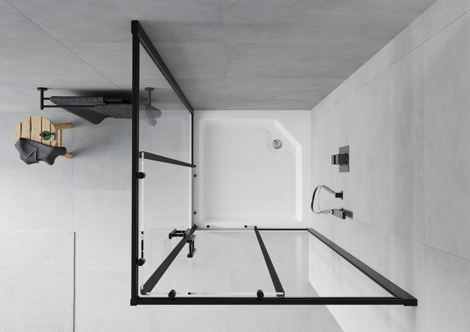 Mexen Rio cabină de duș pătrată 90 x 90 cm, transparentă, neagră + cadă de duș Rio, albă - 860-090-090-70-00-4510