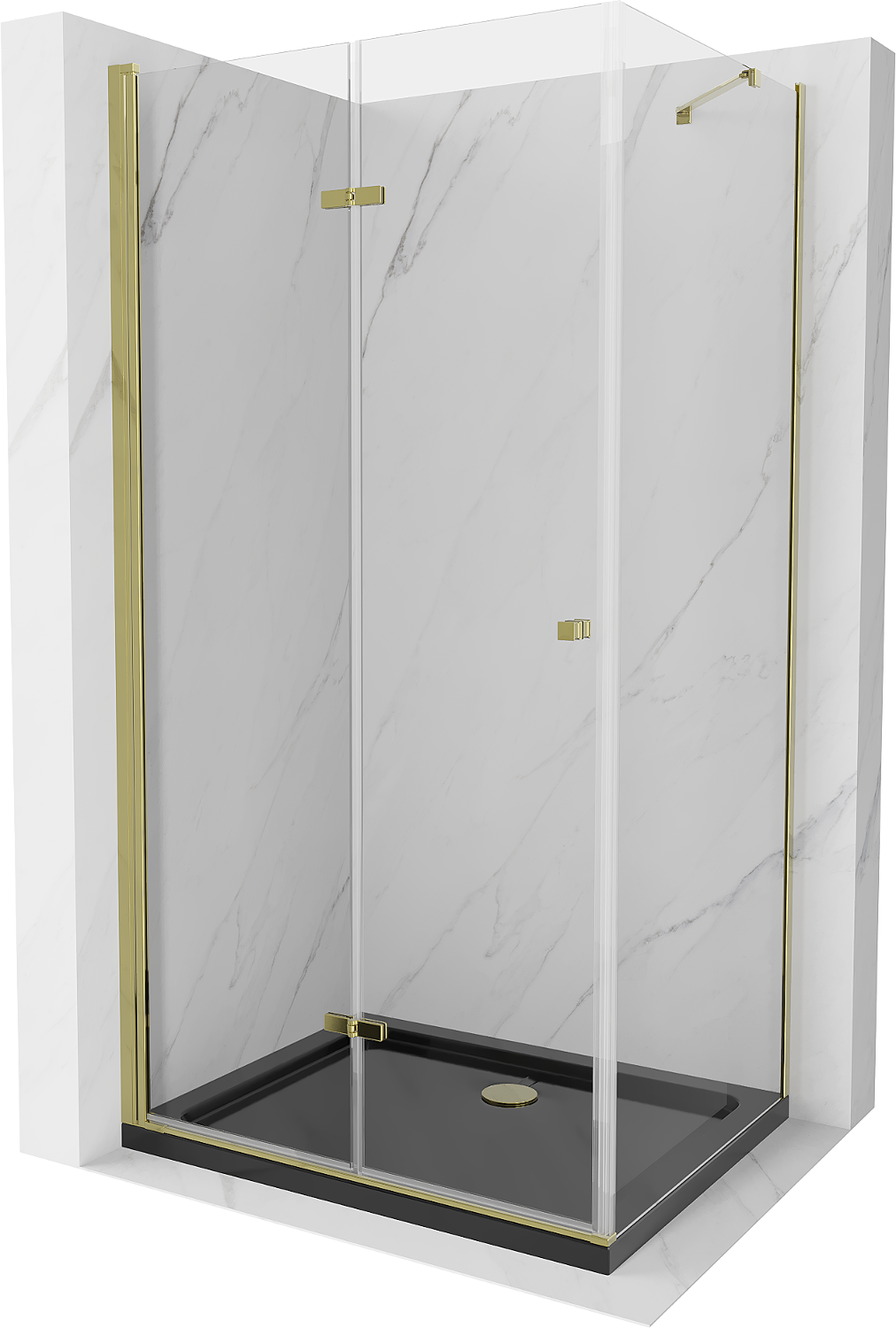 Mexen Lima cabină de duș pliabilă 80 x 100 cm, transparentă, aurie + cadă de duș Flat, negru - 856-080-100-50-00-4070G