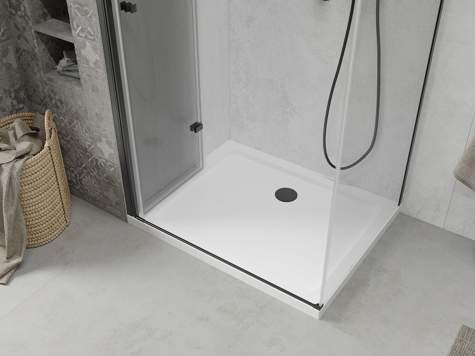 Mexen Lima cabină de duș pliabilă 80 x 100 cm, transparentă, neagră + cădiță Flat, albă - 856-080-100-70-00-4010B