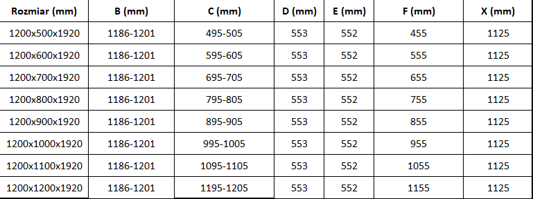 Dimensiune: 120x90 cm (uși 120 cm, perete 90 cm)