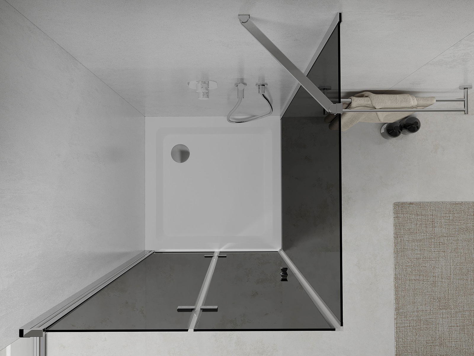 Mexen Lima cabină de duș pliabilă 70 x 70 cm, grafit, crom + cadă Flat, alb - 856-070-070-01-40-4010