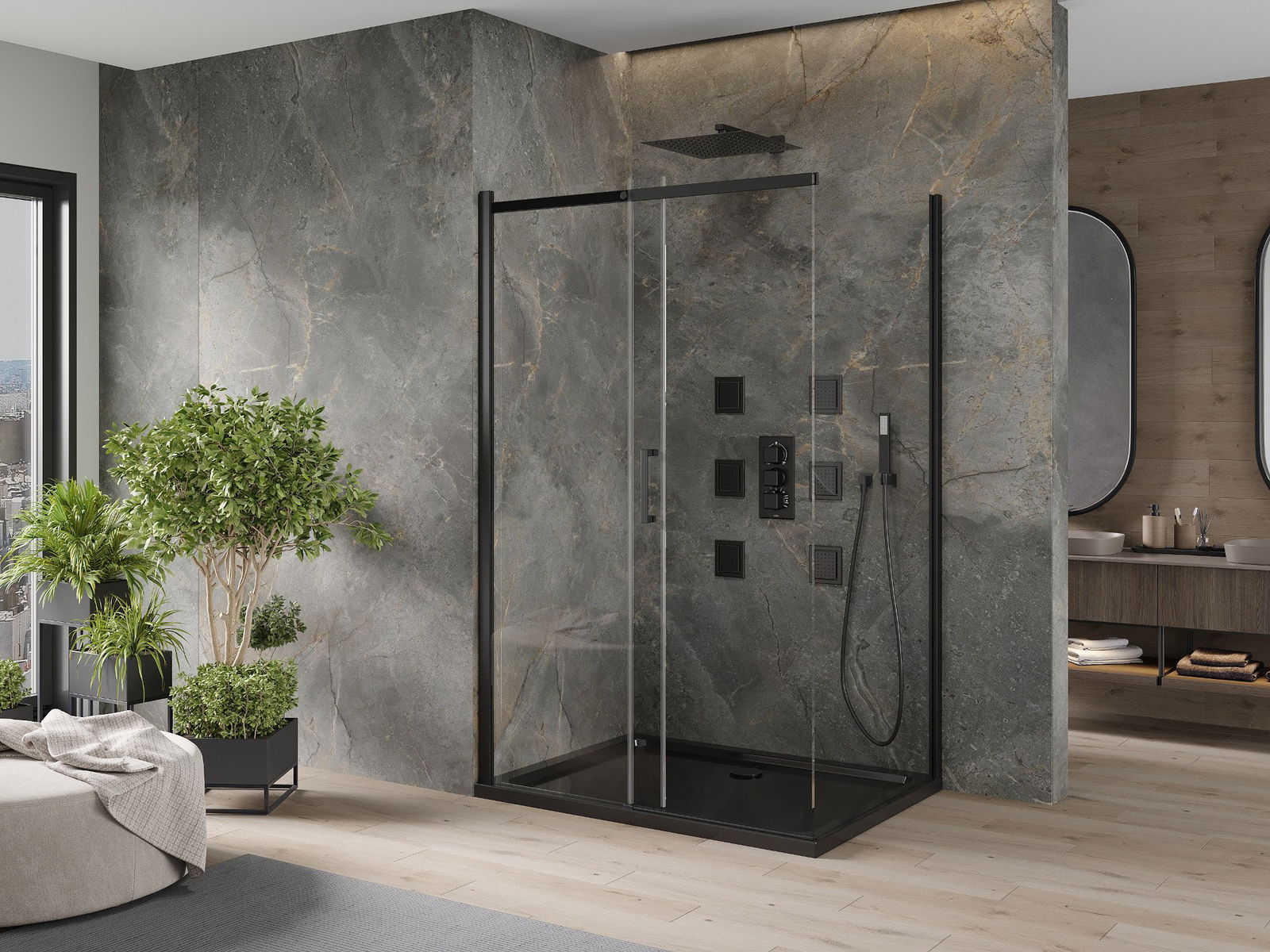 Mexen Omega cabină de duș glisantă 100 x 80 cm, transparentă, neagră + cadă Flat, neagră - 825-100-080-70-00-4070B