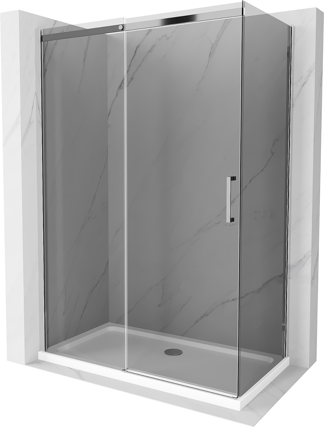 Mexen Omega cabină de duș glisantă 140 x 80 cm, grafit, crom + cadă Flat, alb - 825-140-080-01-40-4010