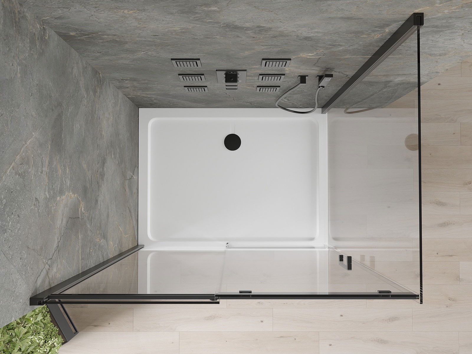 Mexen Omega cabină de duș glisantă 110 x 90 cm, transparentă, neagră + cadă Flat, albă - 825-110-090-70-00-4010B