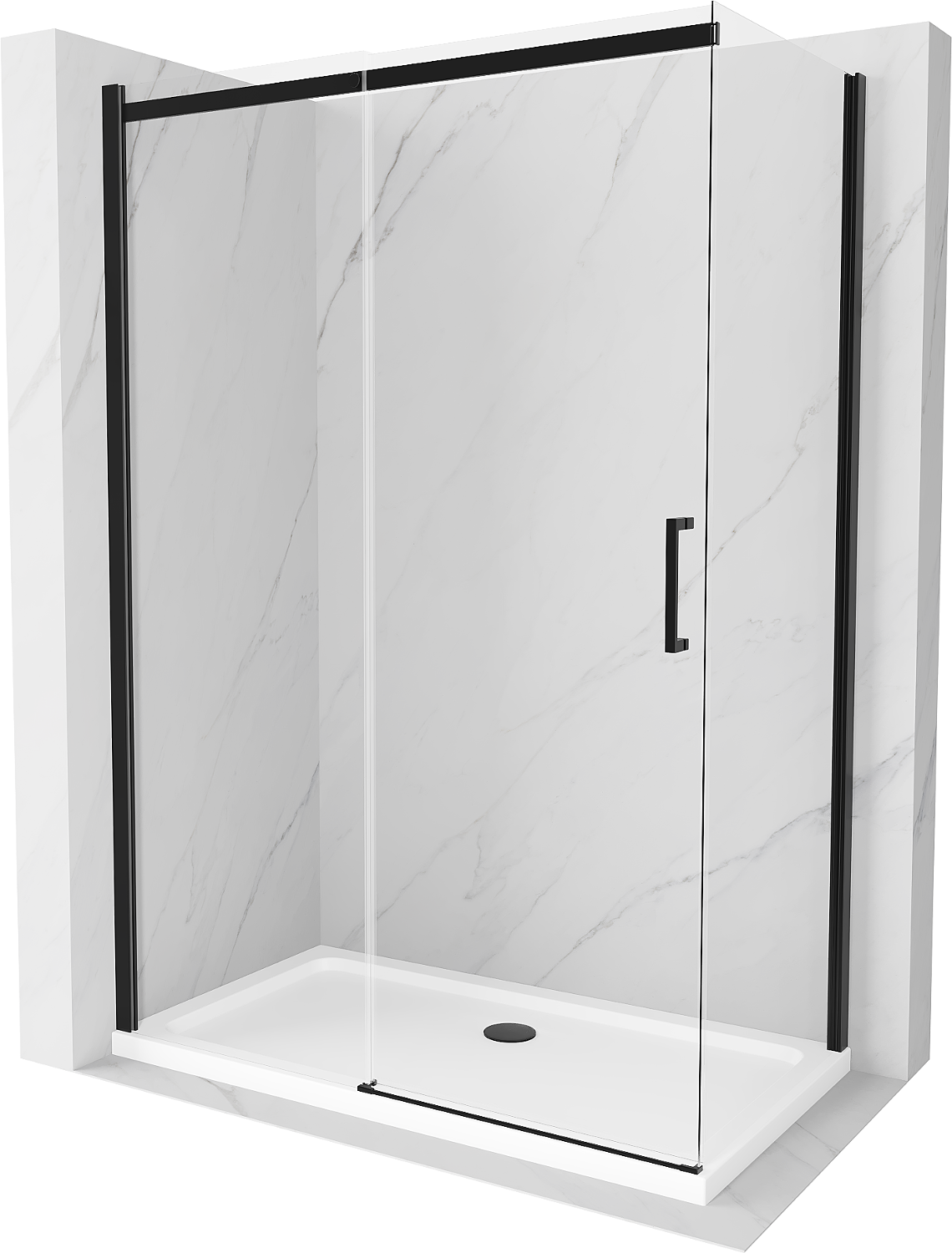 Cabină de duș glisantă Mexen Omega 130 x 70 cm, transparentă, neagră + cadă Flat, alb - 825-130-070-70-00-4010B